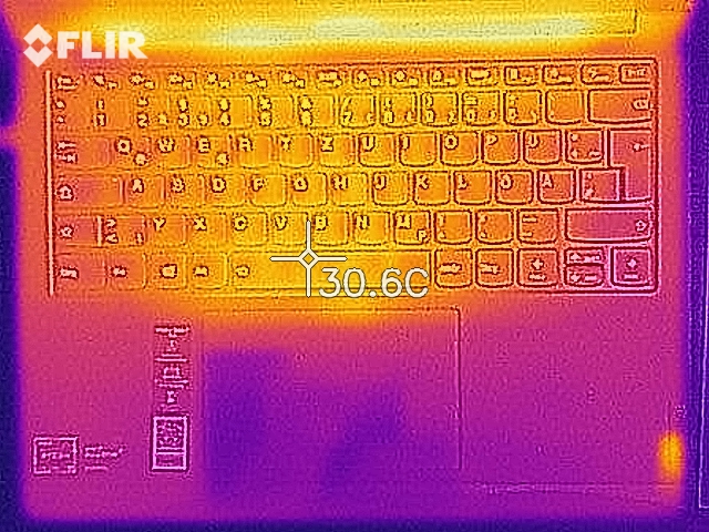 (+) Die Handballen und der Touchpad-Bereich sind mit gemessenen 28.5 °C kühler als die typische Hauttemperatur und fühlen sich dadurch kühl an.
