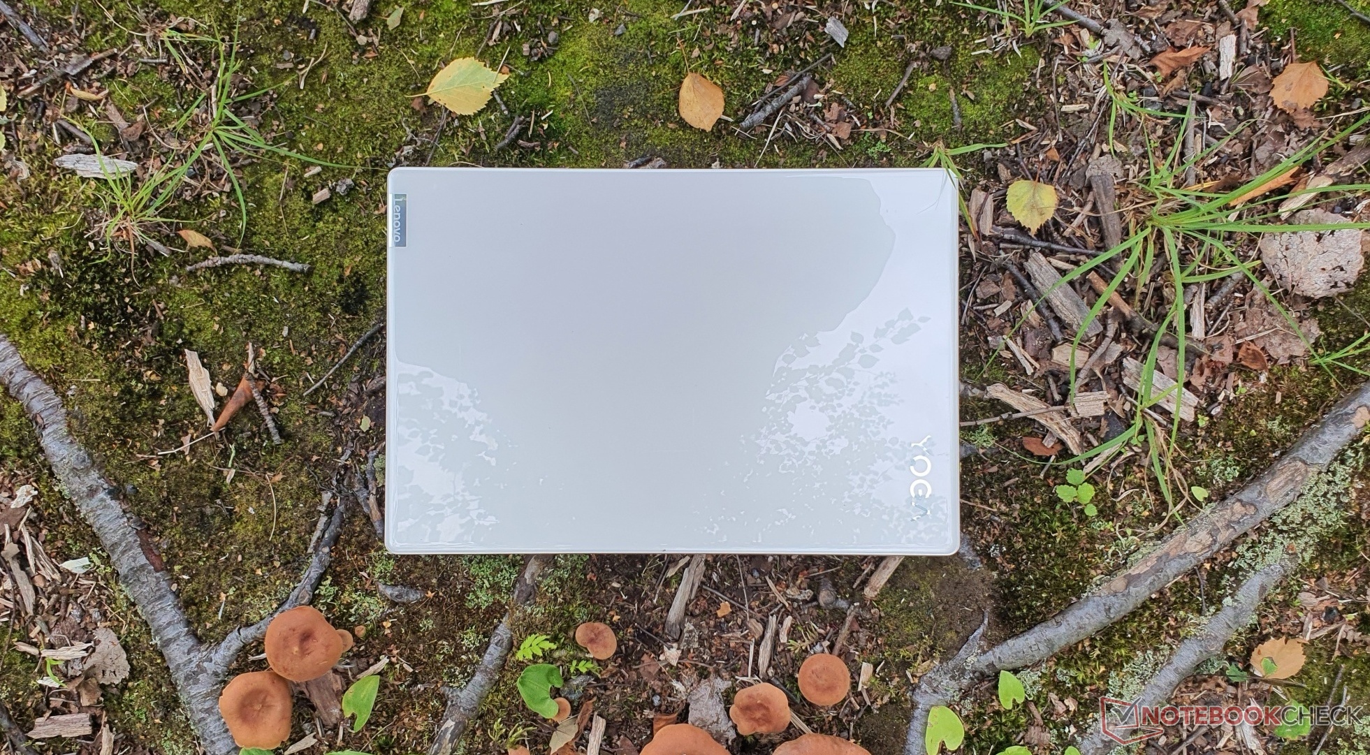 Die meisten würden das Gehäuse des Slim 9i als schick bezeichnen, mit einem ansprechenden sowie hochwertigen Design. Dazu trägt die aus 3D-Glas bestehende Oberfläche des Deckels bei, die stark an ein Smartphone-Flagship erinnert und Fingerabdrücken widersteht. Jedoch bleibt zu sehen, wie sich das Glas auf lange Sicht bewährt. Die Farbe bezeichnet Lenovo als "Oatmeal", allerdings ist diese in real deutlich heller als vom Haferflocken-Frühstück des Testers.