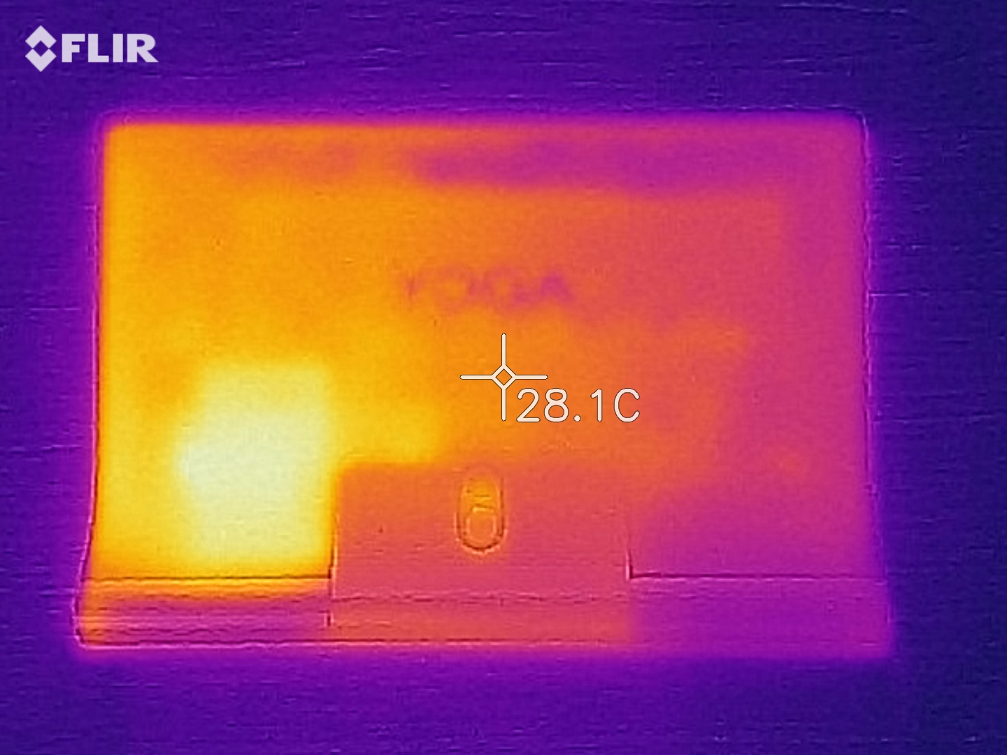 (+) Ohne Last messen wir eine durchschnittliche Temperatur von 28.5 °C auf der Oberseite. Der Klassendurchschnitt erreicht 30 °C.