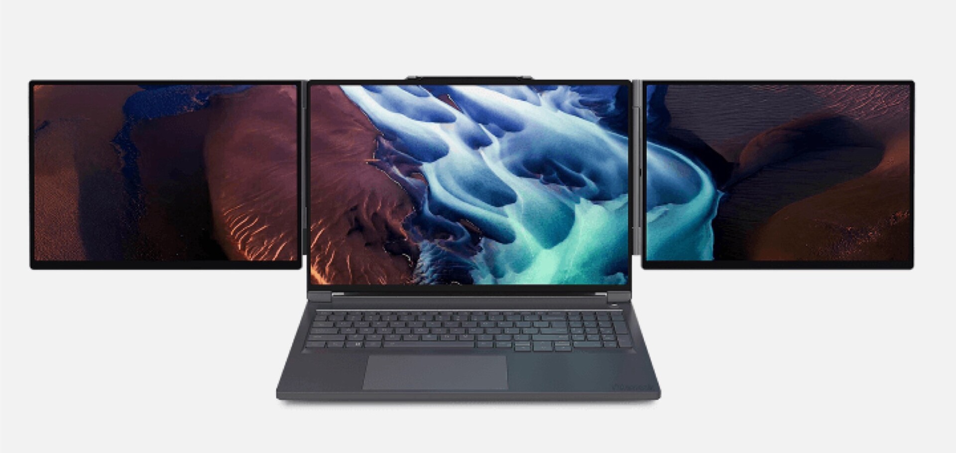 Wie die Bilder zeigen, können wahlweise größere Displays im Querformat oder auch kleinere Hochformat-Bildschirme verwendet werden. Durch kleine Scharniere kann der Winkel dieser Displays angepasst werden. Wie die Bilder bereits zeigen, ist diese Bildschirmerweiterung mit mehreren Laptops kompatibel, allerdings sind keine Kabel zu sehen, sodass unklar ist, wie die Verbindung zwischen dem Laptop und den zusätzlichen Displays hergestellt wird.
