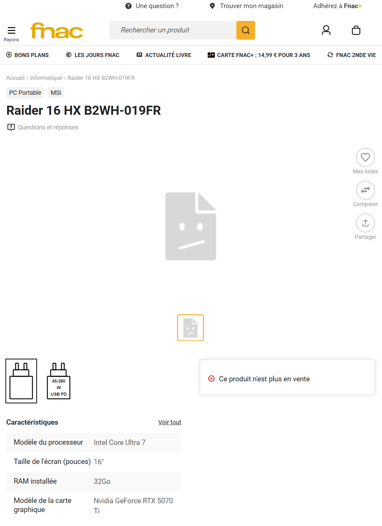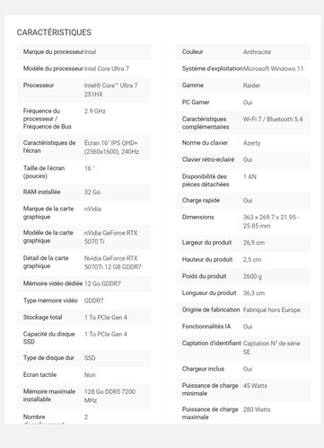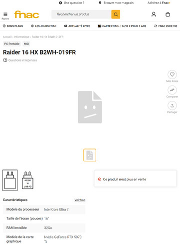 Nun zeichnet sich ab, dass eine ganze Reihe weniger leistungsstarker Gaming-Laptops mit Core Ultra 7 251HX vor der Tür steht. Auch der Händler Fnac hat enthüllt, dass eine neue Version des Raider 16 HX B2WH mit demselben Prozessor erscheint.