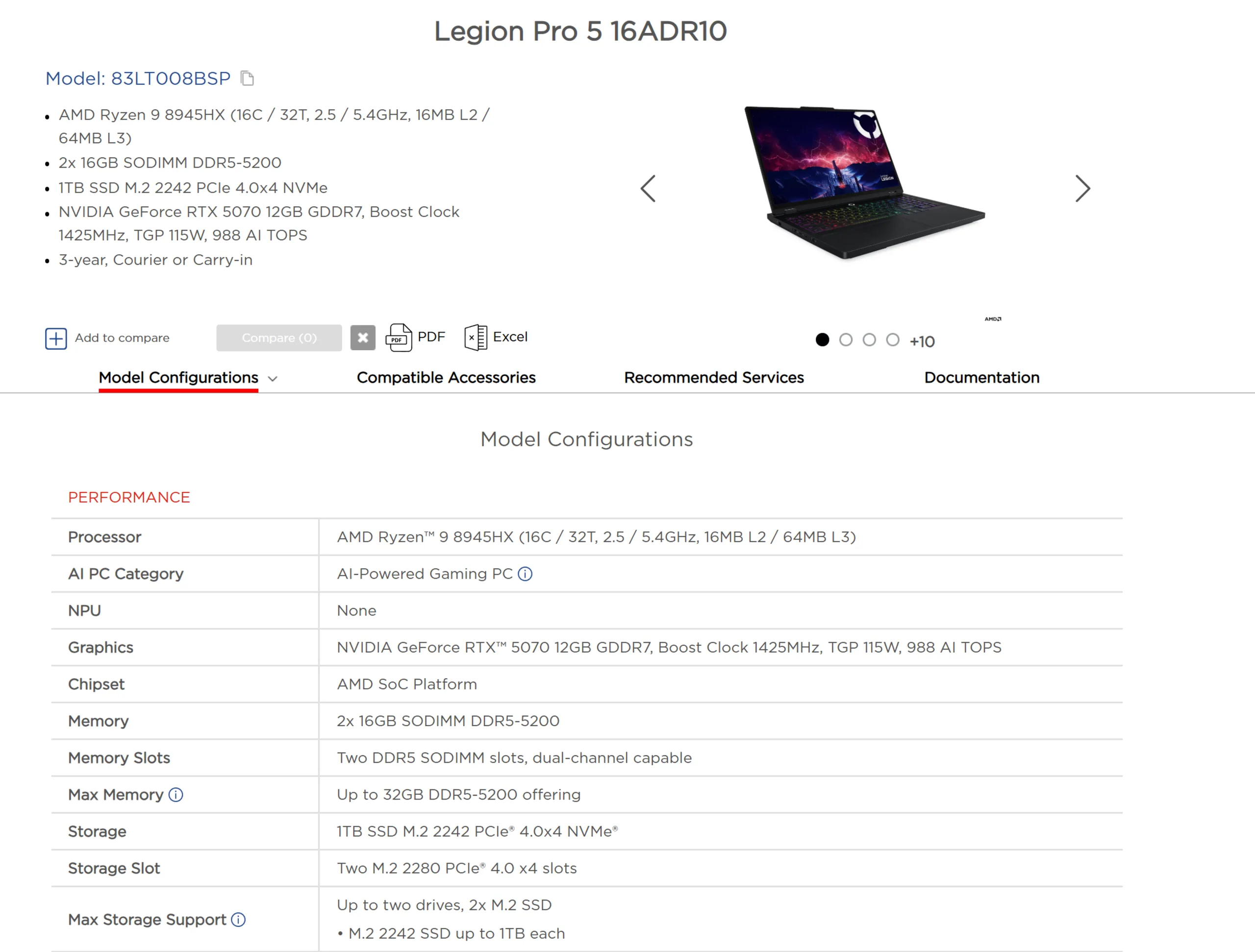Wie die Bilder unten zeigen, handelt es sich dabei nicht um neue Generationen, sondern um überarbeitete Versionen des Legion Pro 5 16ADR10, Legion Pro 5 16IRX10, LOQ 15IRX10 und LOQ 17IRX10. Bis auf das Legion Pro 5 16ADR10 setzen alle Modelle auf Intels Arrow-Lake-HX-Prozessoren, während das 16ADR10 stattdessen AMDs Dragon-Range-Plattform nutzt. Berichten zufolge hat Nvidia den Herstellern ein Embargo auferlegt, das „ungefähr Ende April“ ausläuft. Das passt zu Amazons Hinweis, wonach Lenovo sein neues Legion 5i am 1. Mai veröffentlichen wird.