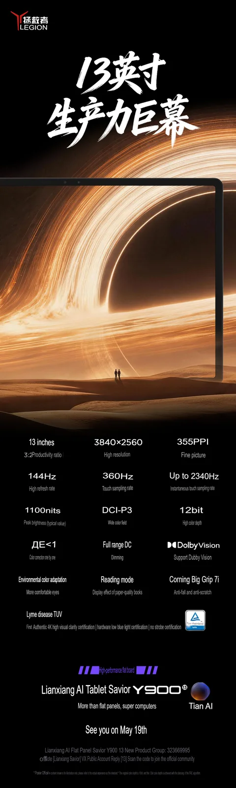 Darüber hinaus deuten der Schutz durch Gorilla Glass 7i, DC-Dimming, Dolby-Vision-Unterstützung und ein Modus zur Anpassung an das Umgebungslicht darauf hin, dass Lenovo möchte, dass dieses Gerät gleichzeitig als Desktop-Ersatz, Media-Center und Gaming-Device fungiert. Es bleibt abzuwarten, welche Rechenleistung Lenovo für die 2026er-Edition des Y900-Tablets gewählt hat, aber gemessen an der vorherigen Y900-Version, die global als Lenovo Tab Extreme auf den Markt kam, dürfte sie ziemlich leistungsstark sein.