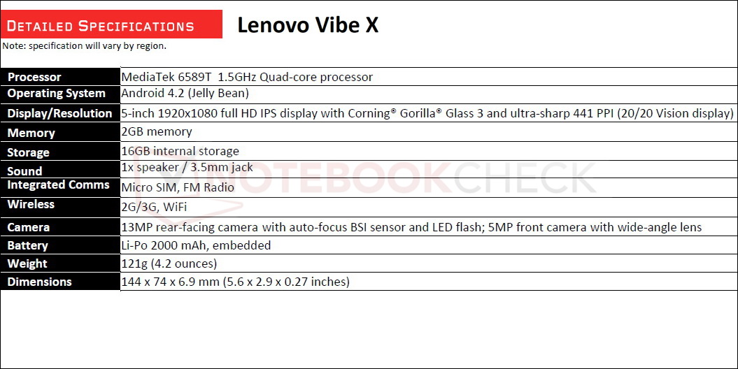 Mit dem Vibe X S960 Smartphone stellt Lenovo ein Premium-Smartphone mit 5 Zoll großem Full-HD-IPS-Touchscreen vor, der eine Auflösung von 1.920 x 1.080 Pixeln (441 ppi) bietet und von Corning Gorilla Glass 3 vor Kratzern geschützt ist. Das Vibe X S960 wiegt rund 120 Gramm und ist mit 6,9 Millimetern sehr flach. Angetrieben wird das Lenovo Vibe X von einem MediaTek MT6589 Quad-Core-Prozessor, der mit 1,5 GHz getaktet ist.