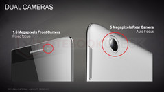 Zudem an Bord: Lautsprecher, 1x 3,5-mm-Soundbuchse, micro-USB (OTG), WLAN 802.11b/g/n, Bluetooth, verschiedene Sensoren und eine 5,0-MP-AF-Hauptkamera sowie eine 1,6-MP-Cam an der Vorderseite.