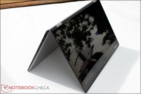 Das Yoga 2 Pro fühlt sich recht wertig an und der Klappmechanismus lässt sich gut bedienen. Das hochaufgelöste 3.200 x 1.800 Pixel IPS Display ist an sich von ordentlicher Qualität. Es bietet gute Farben und ist sehr schön anzusehen. Ein Problem ist allerdings das glänzende Display und die vergleichsweise geringe Leuchtkraft von 350 cd/m². Kurz gesagt ist der Bildschirm etwas zu dunkel. Unter freiem Himmel sieht man kaum etwas. In Innenräumen weiß das Display besser zu gefallen. Immerhin wiegt das neue Yoga nur 1,4 kg. Und die Akkulaufzeit soll ordentliche 9 Stunden betragen.