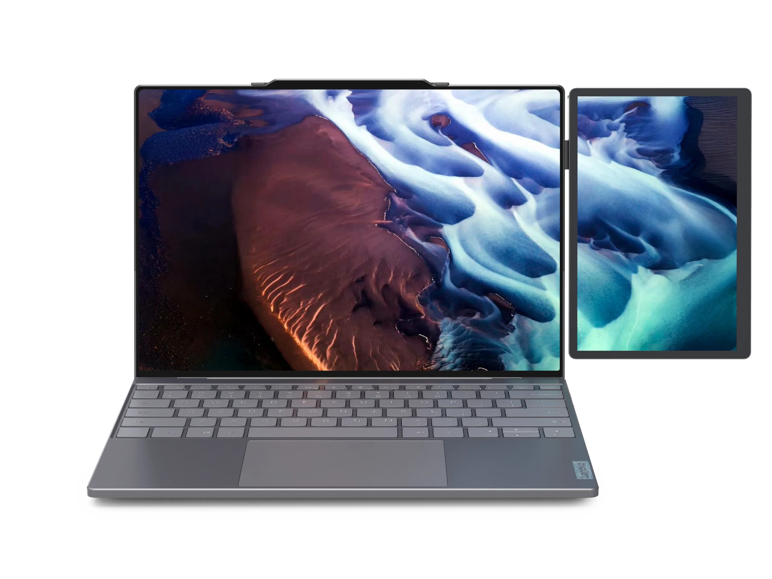 Angekündigt hat Lenovo insgesamt vier verschiedene Systeme, wobei es sich jeweils um Display-Module handelt. Beim Magic Bay Dual Display Concept handelt es sich um ein ansteckbares System mit 13,3 Zoll Zusatzbildschirmen. Damit soll sich die verfügbare Arbeitsfläche des ThinkBook 16p ganz erheblich erweitern lassen. Vorteilhaft an dieser Magic Bay-Lösung ist eben der komplette Verzicht auf einen zusätzlichen Ständer oder eine Halterung - diese ist integriert, zudem sind Verbindungskabel nicht nötig.