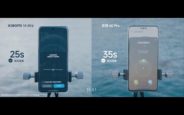 Primär wohl für China relevant ist die Zwei-Wege-Kommunikation des Xiaomi 14 Ultra mit Satelliten, falls keine Mobilfunknetze zur Verfügung stehen. Hier vergleich sich Xiaomi vor allem mit dem Huawei Mate 60 Pro und schneidet in diversen Tests jeweils etwas besser ab. Die Screenshots unten stammen aus einem Vergleichsvideo, das hier auf Weibo zu sehen ist.