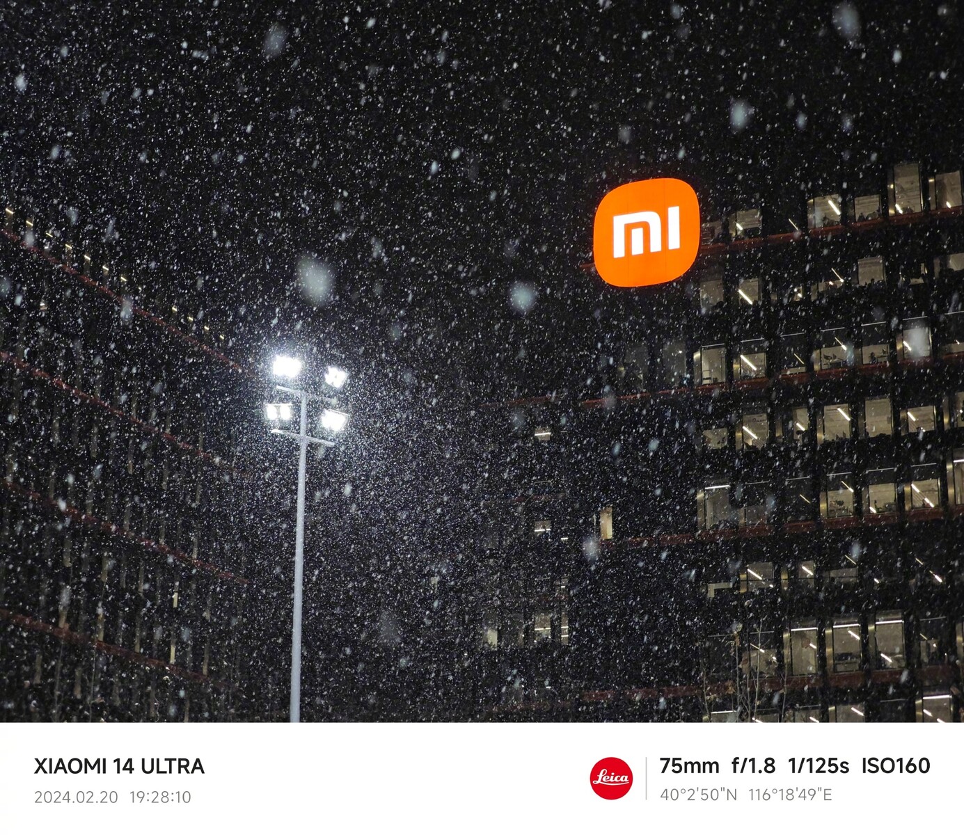 Sehr wohl wieder für Europäer interessant ist die neue Leica-Kamera zu der Xiaomi ja bereits vor einigen Tagen viel Konkretes bestätigt hat. Die Sample-Photos unten wurden von diversen Xiaomi-Mitarbeitern vor dem Xiaomi Technology Campus bei heftigem Schneefall aufgenommen und sollen demonstrieren, wie gut die Kamera bei wenig Licht, starken Kontrasten und viel Bewegung im Bild ist. Im Gegensatz zu den vermutlich von Photographen mit viel Knowhow erstellten "offiziellen" Sample-Photos hier und hier, zeigen die Aufnahmen unten vermutlich, was man spontan so aus der Leica-Kamera herausholen kann.