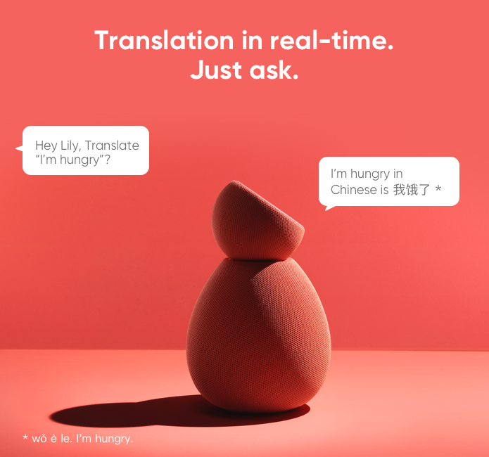 Lily ist Lautsprecher und chinesischer KI-Assistent in einem. Das Gerät beherrscht aber auch Englisch als Grundsprache, um die Lingua Asia zu unterrichten. Das geschieht durch interaktive Konversationen des Nutzers mit Lily, Real-Time-Übersetzungen, sprachgesteuerte Vokabel-Spiele und andere Funktionen, die auf dem Lehrplan stehen.