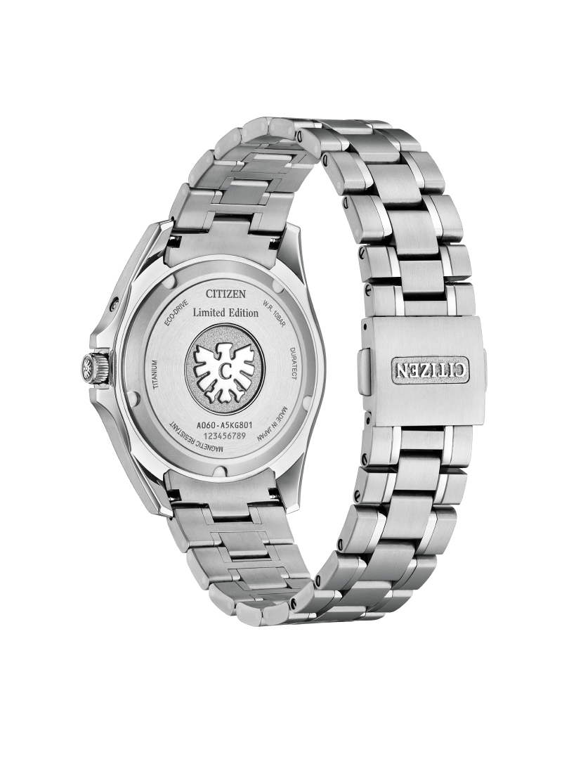 Das 40,0 × 12,2 mm große Gehäuse sowie das dazu passende Armband bestehen aus Citizens patentiertem Super Titanium und sind mit einer Duratect-Platinum-Beschichtung versehen. Dadurch ist die Uhr rund 40 Prozent leichter als eine herkömmliche Edelstahluhr und etwa fünfmal härter. Zudem ist sie korrosionsbeständig und besonders hautfreundlich.