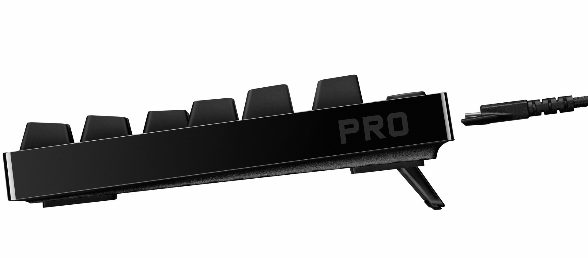 Die mechanische Logitech G Pro Gaming Tastatur präsentiert sich mit kompakten Abmessungen von 360 x 153 x 34,3 Millimetern und einem Gewicht, das ohne dem abnehmbaren USB-Kabel, bei rund 980 Gramm liegt. Das Logitech G Pro Gaming Keyboard wurde als mechanische Tastatur ohne Nummernblock gemeinsam mit Top-Athleten des eSport entwickelt. Für solide Stabilität sorgt eine Stahlplatte, die auf der Rückseite der Tastatur befestigt wurde.
