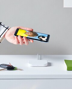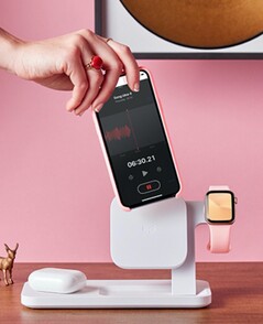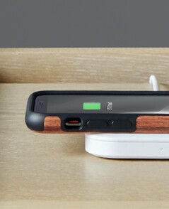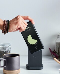 Mit dem Powered Stand kann ein Smartphone im aufgestellten Zustand geladen werden, sodass man es etwa auf dem Schreibtisch platzieren kann, um eingehende Benachrichtigungen umgehend lesen zu können. Samsung-Smartphones werden dabei mit bis zu 9 Watt geladen, iPhones mit maximal 7,5 Watt und AirPods mit 5 Watt. Eine LED an der Oberseite leuchtet, wenn ein Gerät korrekt geladen wird. Da im Stand gleich drei Ladespulen verbaut sind sollten Geräte in allen Größen problemlos kompatibel sein.