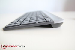 Die Tastatur selbst misst ohne das NumPad etwa 28 cm und entspricht von der Größe her etwa der Tastatur eines 13-Zoll-Laptops, also ohne das NumPad. Der Großteil der Tastatur ist sehr dünn gehalten, nur der obere Rand ist stark verdickt. Das eröffnet einerseits die oben genannten Unterbringungsmöglichkeiten für den Energiespeicher und sorgt andererseits dafür, dass die Tastatur beim Schreiben etwas angekippt ist.