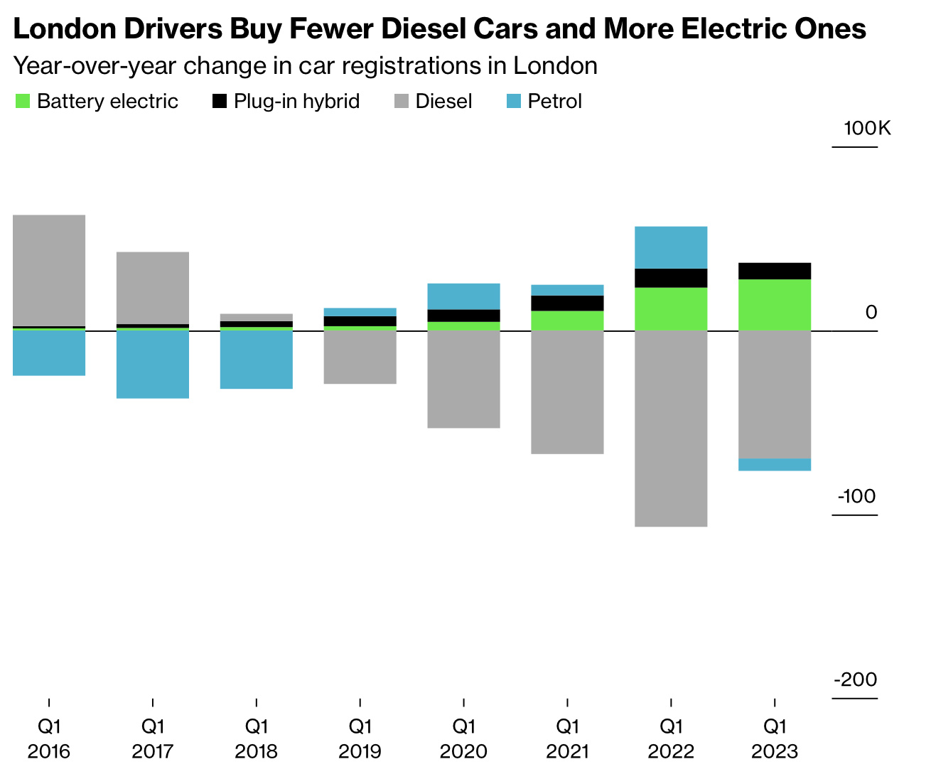 Bloomberg | Teaser-Bild: Bing AI | Bild 2: Mayor of London, Inner London Ultra Low Emission Zone - Ein Jahresbericht | Bild 3: Department for Transport