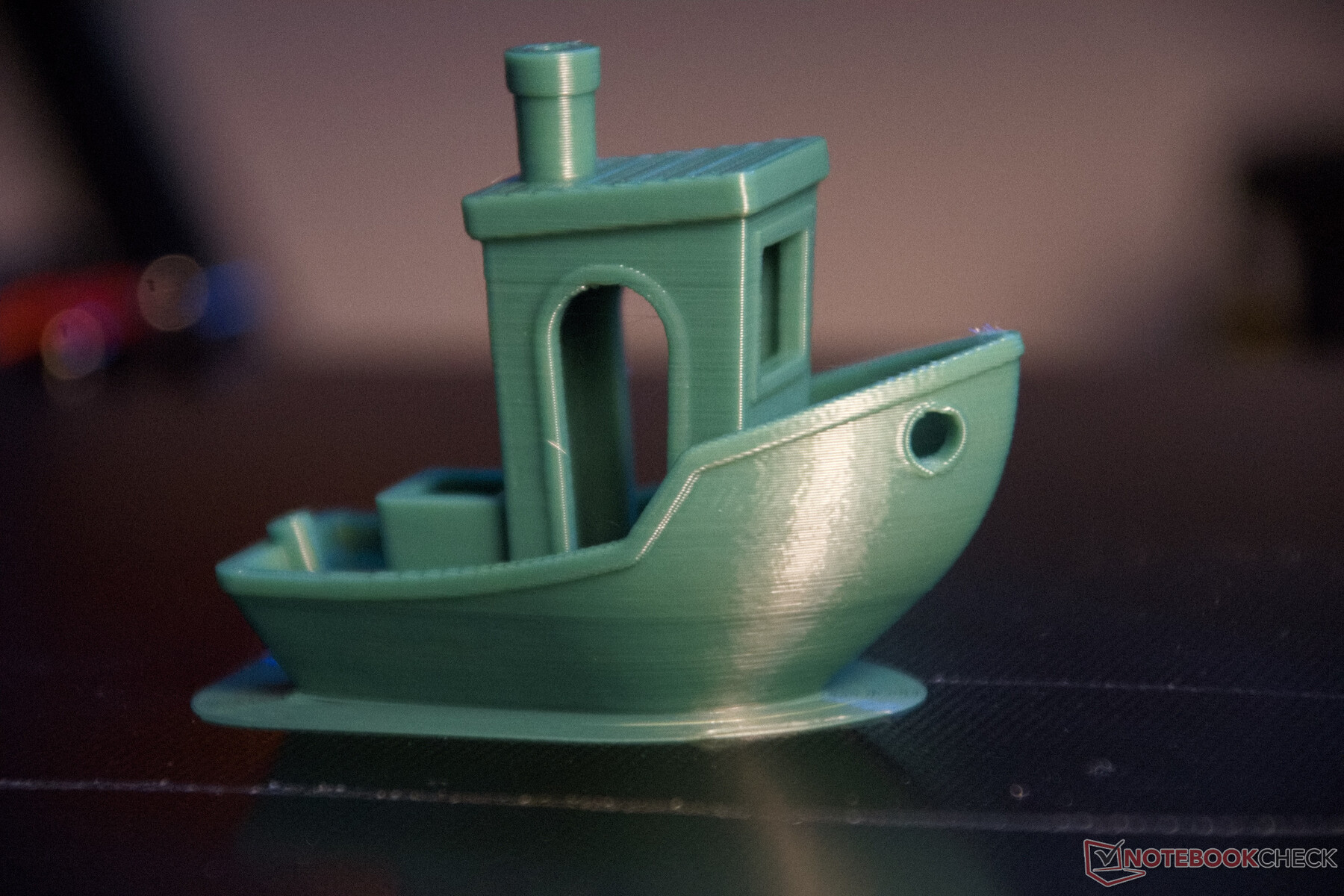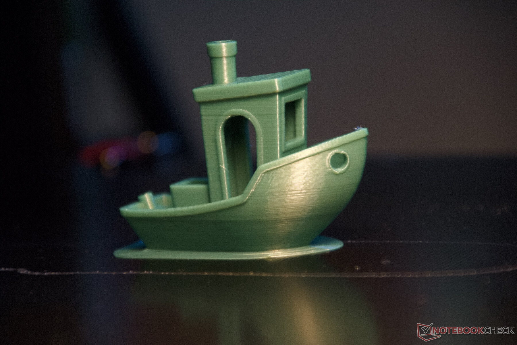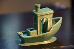 Das obligatorische 3D-Benchy kann dem Drucker nur kleine Fehler nachweisen. Unter dem richtigen Licht betrachtet zeigen sich hier typische kleine Wellen durch Resonanzen. Sehr gut sind dagegen die Darstellung kleiner Details, Überhänge und Brücken gedruckt worden. Das Ergebnis des 83 Minütigen Drucks kann sich sehen lassen.