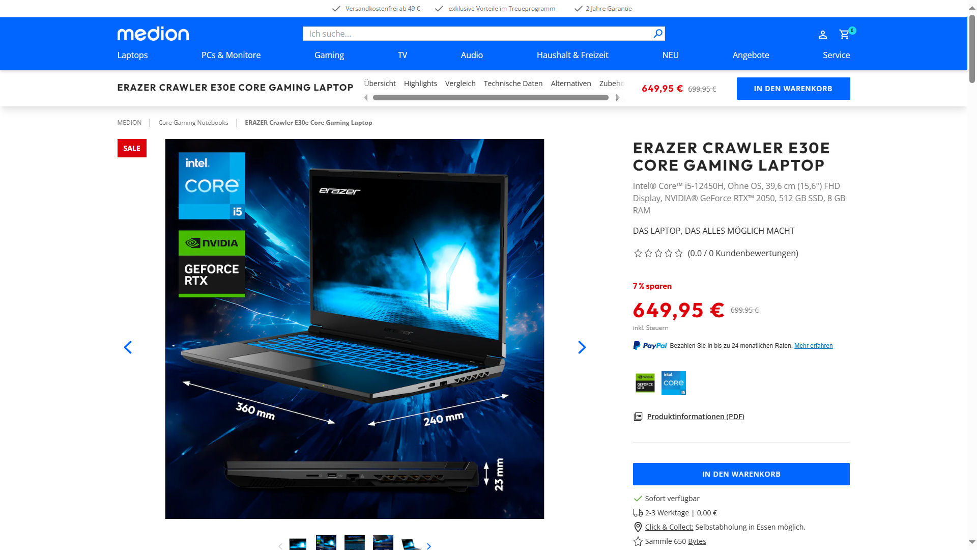 Die Erazer-Crawler-Reihe der Firma Medion steht für Gaming-Notebooks des unteren bis mittleren Preissegments. Aktuell führt Medion mit dem Erazer Crawler E30e ein Einstiegsmodell in die Welt der Gaming-Laptops zu einem Angebotspreis von 649,95 Euro im Sortiment. Einem unserer Tests musste sich das Gerät noch nicht stellen.