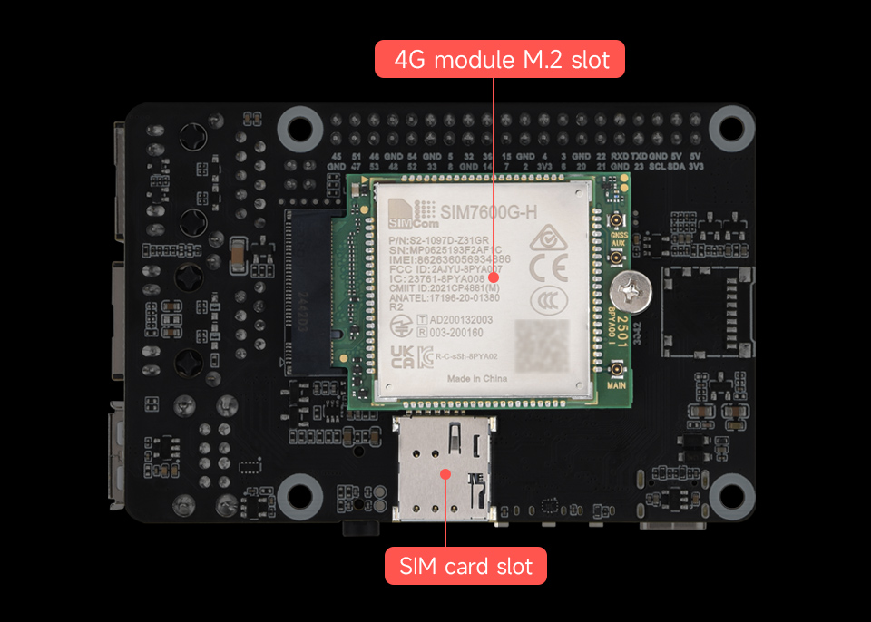 Unabhängig von der gewählten Modellvariante kommt ein jeweils 512 Megabyte großer DDR3L-Arbeitsspeicher zum Einsatz. Bildschirme lassen sich nicht über HDMI, aber über MIPI DSI anschließen. Es sind jeweils zweimal USB 2.0 als Ports ausgeführt, weitere USB-Anschlüsse lassen sich über Header abgreifen. Die beiden verbauten Ethernet-Ports unterstützten keine Gigabit-Geschwindigkeit, sondern maximal 100 MBit/s. Neben dem M.2-Slot für das Mobilfunkmodem befindet sich der SIM-Kartenslot, es steht ein kombinierter Klinkenanschluss für die Audioausgabe oder die Anbindung eines Mikrofons bereit. Wie bei Einplatinenrechnern ganz üblich steht eine farbkodierte GPIO-Stiftleiste zur Verfügung. Damit lassen sich etwa unter Nutzung von UART Sensoren und Aktoren anschließen. Die 85 x 56 Millimeter große Platine wird mit eMMC-Speicher, ohne WiFi und dafür aber gleich dem LTE-Modul für einen Preis von 67 Dollar angeboten.