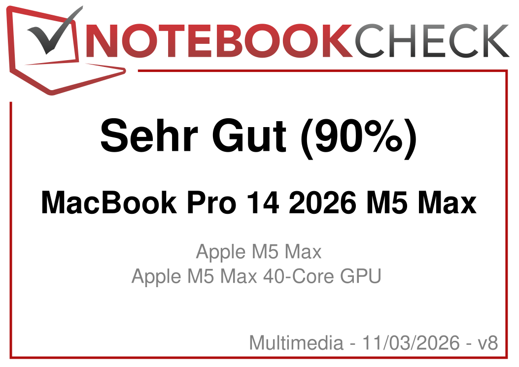 Alles in allem handelt es sich immer noch um ein sehr gutes Multimedia-Notebook, aber das neue M5 Pro ist einfach besser für das 14-Zoll-Gehäuse geeignet. Wenn Sie den M5 Max wollen oder brauchen, sollten Sie sich darüber im Klaren sein, dass die Leistung des 14-Zoll-Modells im Vergleich zum MacBook Pro 16 geringer sein wird.