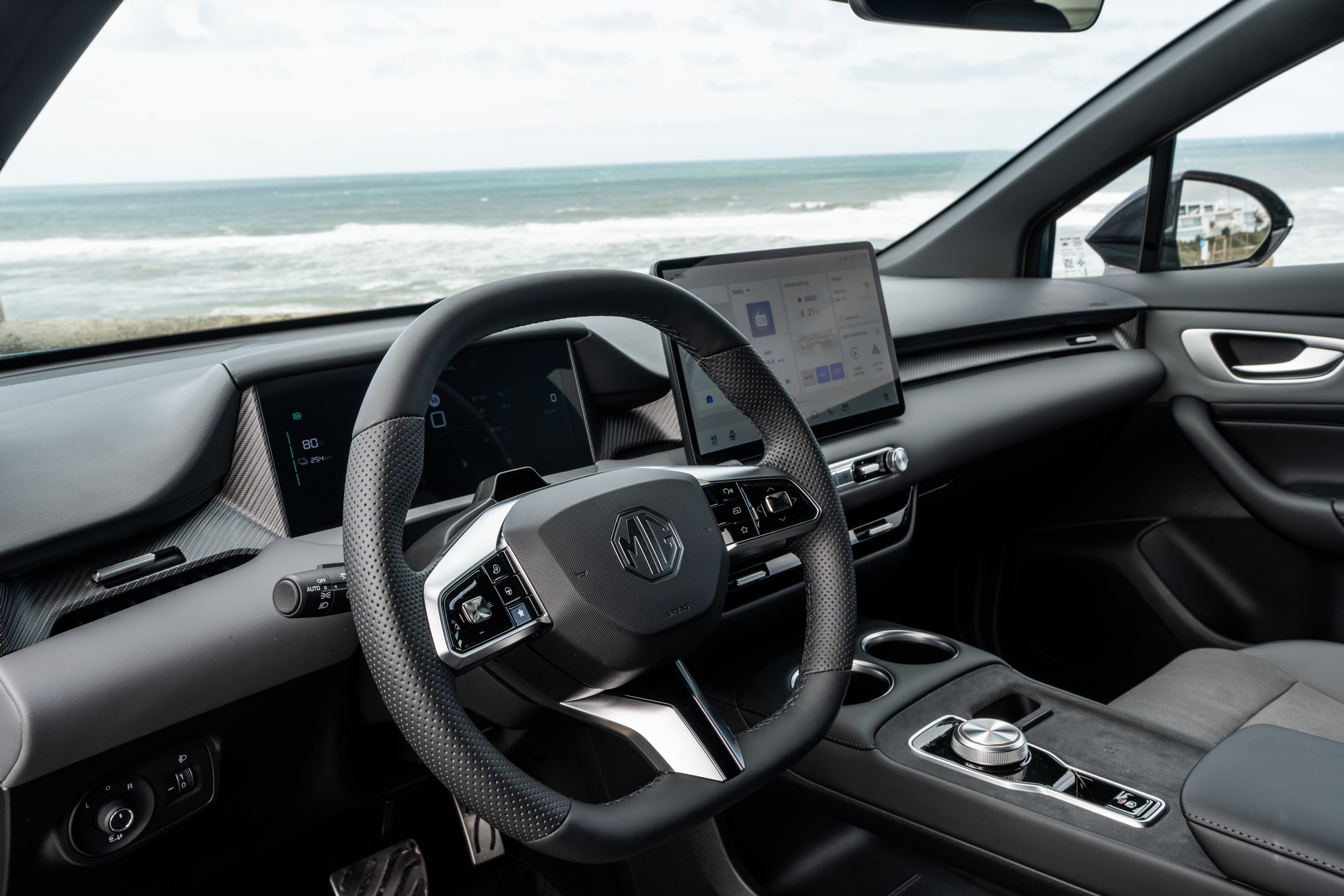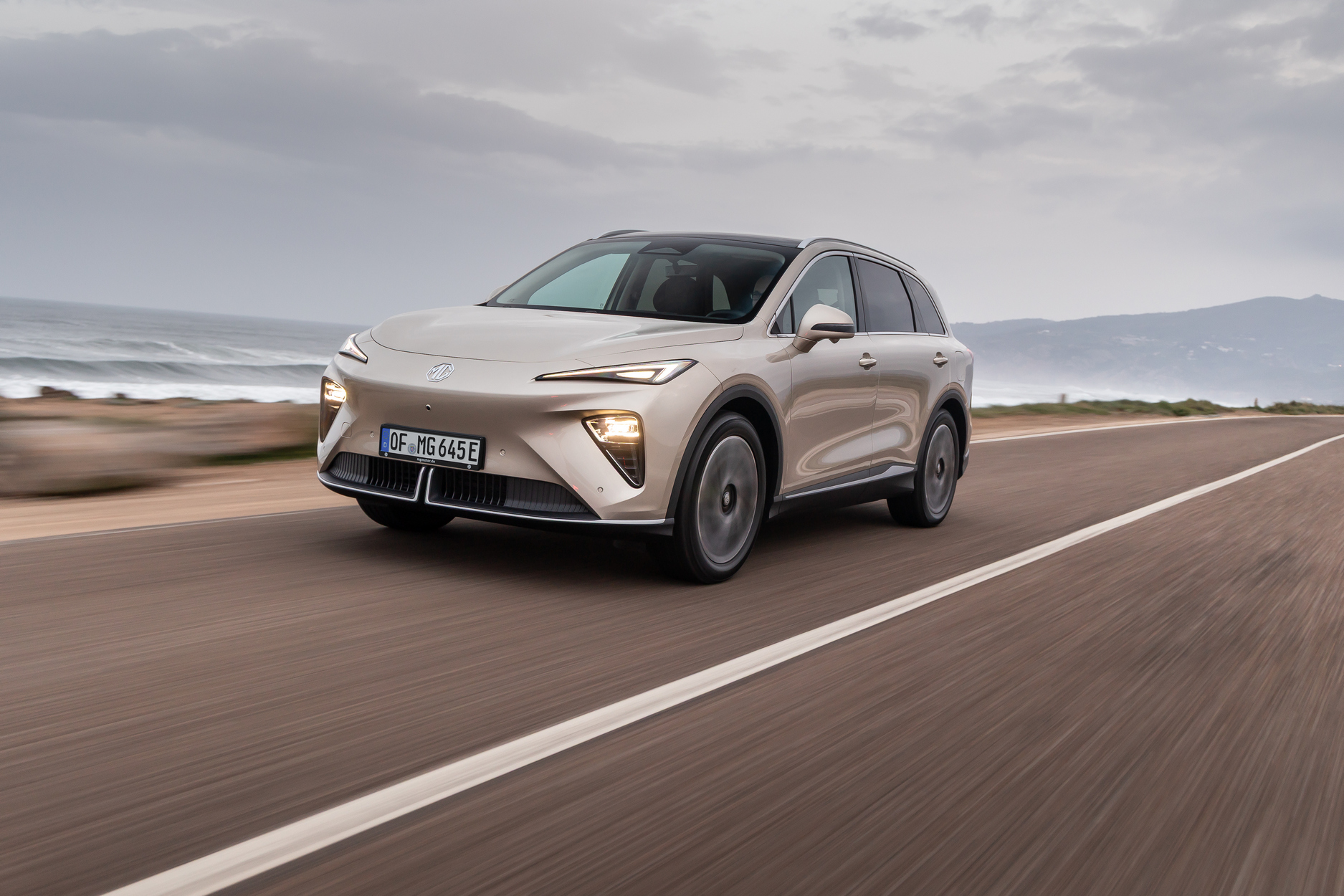 Parallel zum Kompaktklasse-Angriff attackiert der Konzern das lukrative Segment der Familien-Fahrzeuge. Der völlig neu entwickelte E-SUV MGS6 rollt als ausgewachsenes Elektro-SUV mit einer Länge von 4,71 Metern an. MG Motor nennt für seinen MGS6 zudem eine Breite von 1,91 Metern (Höhe 1,66 Meter). Dank aktivem Kühlergrill-Lamellensystem soll der aerodynamische Luftwiderstandsbeiwert bei rund 0,27 liegen. Das rund 1880 Kilogramm schwere Raumwunder bietet auf einem Radstand von 2835 Millimetern üppige Platzverhältnisse. Das hintere Ladevolumen reicht von gewaltigen 674 Litern bis zu maximal 1910 Litern bei umgeklappten Rücksitzen. Ein praktischer Frunk unter der Fronthaube liefert beim Basismodell zusätzliche 124 Liter Stauraum für Ladekabel und Kleinigkeiten.