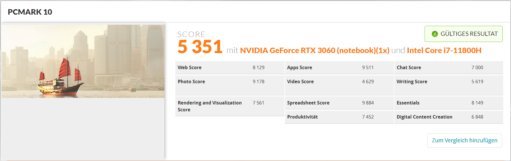 Die Leistung spielt sich auf hohem Niveau ab, das betrifft vor allem den Prozessor. Das 45-Watt-SoC i7 11800H spielt in einer Liga mit dem Apple MacBook Pro 16 2021 M1 Pro, Razer Blade 15 und XPS 17, die – abgesehen von Apple - auf den baugleichen Intel Chip setzen.