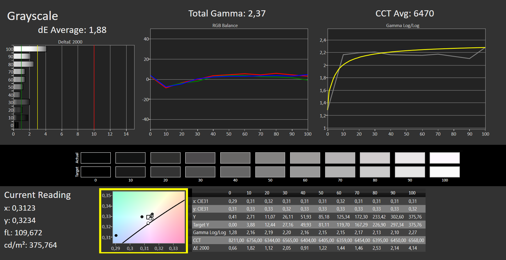 ΔE Greyscale Calman: 1.88 | ∀{0.09-98 Ø5}