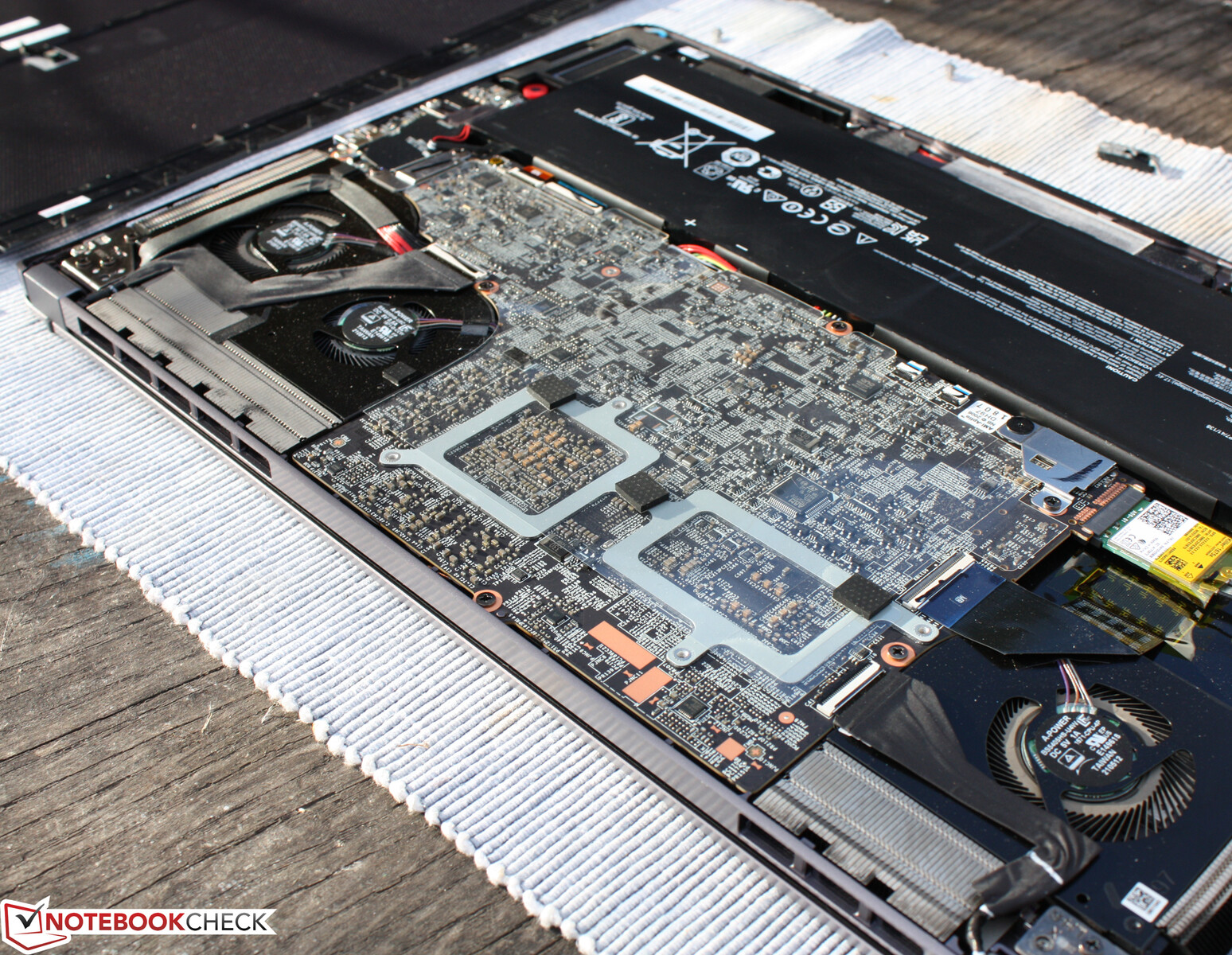 Auf die erste Wartungsebene gelangt man zügig, hier können Akku, WiFi-Chip und 2x SSD getauscht werden. Um aber an die RAM-Sockel zu gelangen, muss das Mainboard komplett entnommen werden. Ein großer Aufwand, denn alle Kabel müssen dafür entfernt werden. Hier gibt es ein sehr gutes Video-How-to: MSI Creator Z16 Upgrade Tutorial.