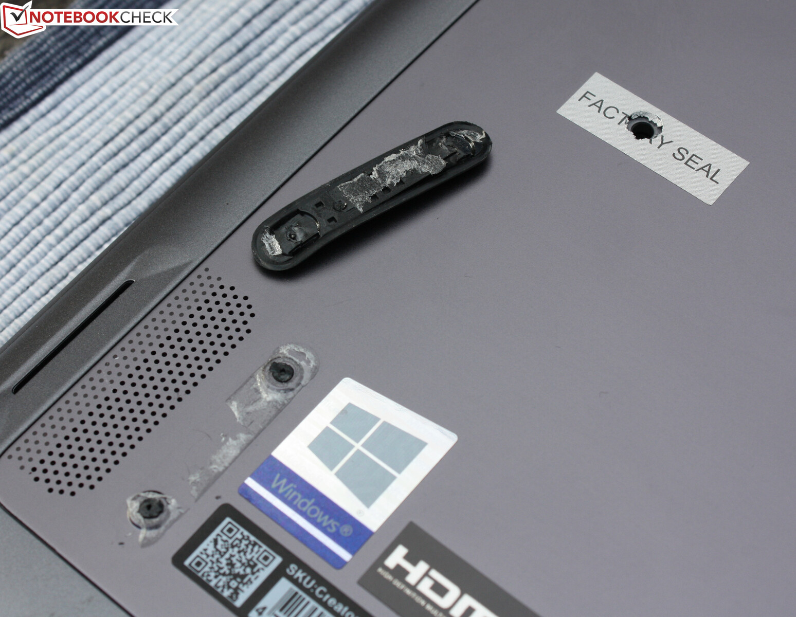 Wer aufrüsten möchte, sollte das How-to beachten: Was auf der Unterseite augenscheinlich wie eine mittig sitzende Wartungsklappe aussieht, ist gar keine. Diese Erkenntnis hatten wir erst nach dem Entfernen der vorderen Füße – die dann leider irreparabel kaputt waren. Die gesamte Bodenplatte wird durch sichtbare Schrauben und solche unter den hinteren Füßen gehalten.