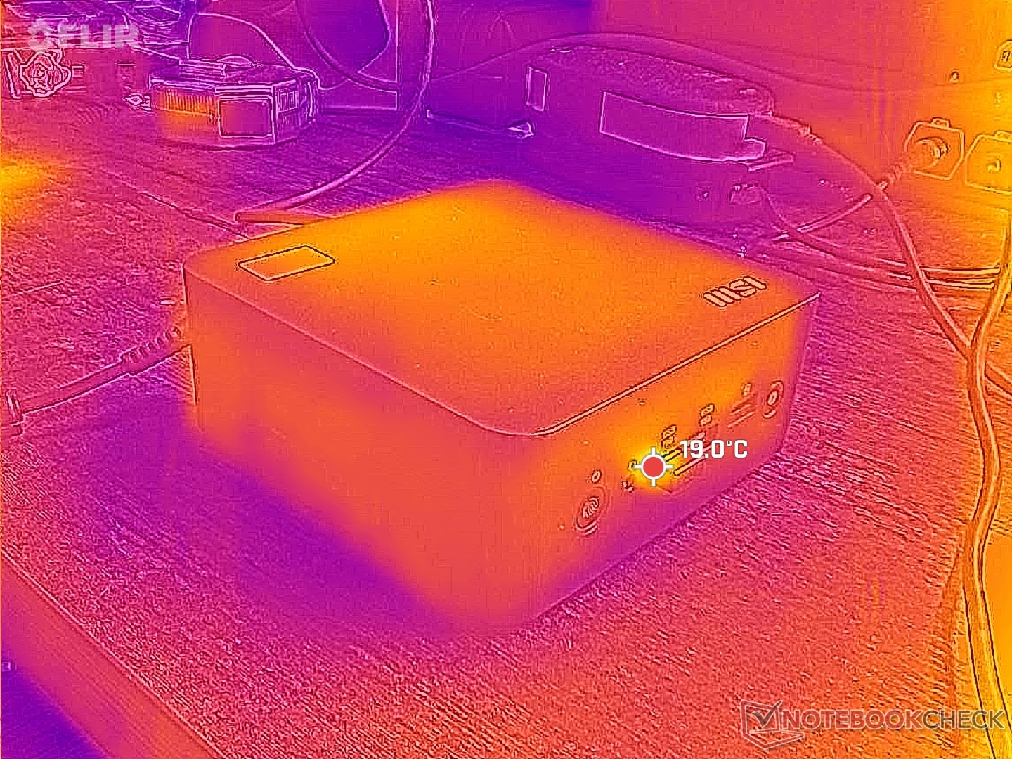 Die Oberflächentemperaturen sind selbst bei anspruchsvollen Anwendungen mit nur 31 °C kaum warm, was vor allem auf die Kunststoffkonstruktion und die stromsparende Intel CPU zurückzuführen ist.