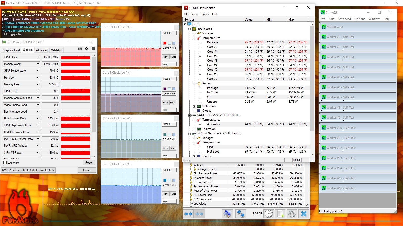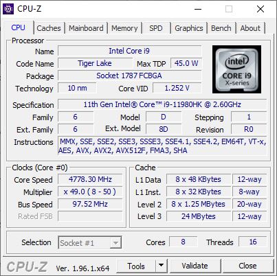 Der hier verbaute Intel Core i9-11980HK ist ein Prozessor mit acht Kernen, der bis zu 16 Aufgaben gleichzeitig bearbeiten kann. Die Taktraten liegen zwischen 2,6 und 5 GHz, wobei die tatsächliche Leistung vom Kühlsystem und der eingestellten TDP abhängt. Letztere konfiguriert MSI mit einem kurzfristigen Wert (PL2) von 200 Watt und einem langfristigen Wert (PL1) von 91,75 Watt.