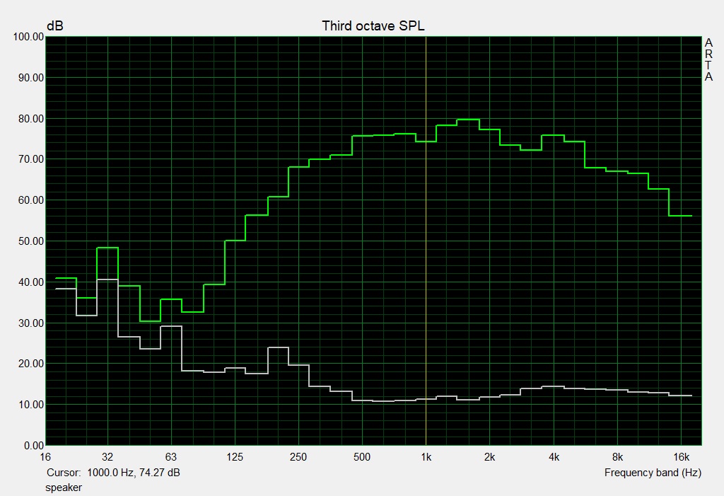 (+) | hörbarer Bereich ist sehr linear (12.6% Abstand zum Median