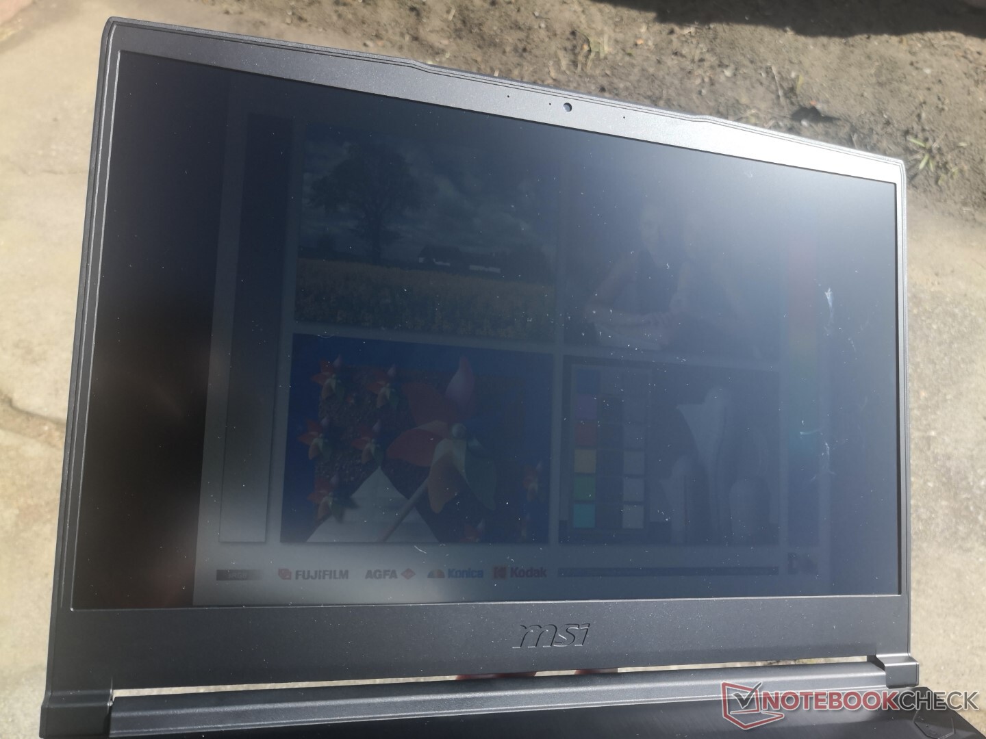 Die Sichtbarkeit im Freien ist unterdurchschnittlich, da der Bildschirm nicht heller oder dunkler ist als der des bisherigen GF65 9SD. Die maximale Helligkeit ist etwas geringer als bei den meisten Gaming-Laptops, wo 300 nits oder mehr üblich sind.