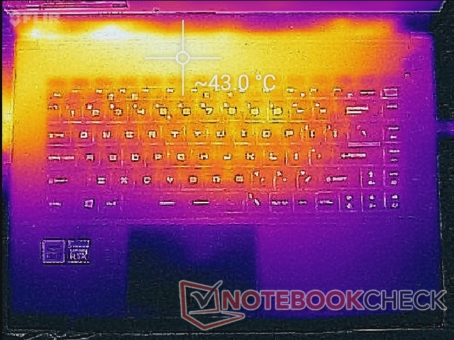 (±) Die maximale Temperatur auf der Oberseite ist 43.4 °C. Im Vergleich liegt der Klassendurchschnitt bei 40.4 °C (von 21.2 bis 68.8 °C für die Klasse Gaming).