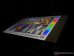 Subjektiv betrachtet war der Bildschirminhalt trotz der matten Oberfläche gestochen scharf. Die Farben wirkten dagegen nicht ganz so tief wie beim GS65 oder dem teureren Razer Blade 15 OLED. Die größte Enttäuschung war jedoch das moderate bis ausgeprägte ungleichmäßige Blacklight Bleeding in den unteren Ecken. Es war beim Einschalten des Notebooks sofort sichtbar und störte auch beim Anschauen von Filmen mit schwarzen Rändern sehr beträchtlich. Einem billigen Multimedia-Laptop würden wir diesen Lapsus möglicherweise noch durchgehen lassen, einem MSI-Laptop mit RTX-GPU für rund 1,500 US-Dollar aber sicherlich nicht.