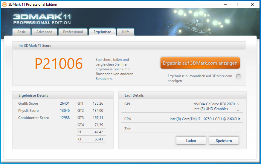 | MSI GL75 10SFR i7-10750H, GeForce RTX 2070 Mobile, 51 Wh | Acer Nitro 5 AN517-52-77DS i7-10750H, GeForce RTX 2060 Mobile, 57.48 Wh | Schenker XMG Neo 17 XNE17M19 i7-9750H, GeForce RTX 2060 Mobile, 46 Wh | Lenovo Legion Y740-17IRHg-81UJ001VGE i7-9750H, GeForce RTX 2080 Max-Q, 76 Wh | MSI GL75 9SEK-056US i7-9750H, GeForce RTX 2060 Mobile, 51 Wh | MSI GP75 Leopard 9SD i7-9750H, GeForce GTX 1660 Ti Mobile, 51 Wh | Durchschnitt der Klasse Gaming | |