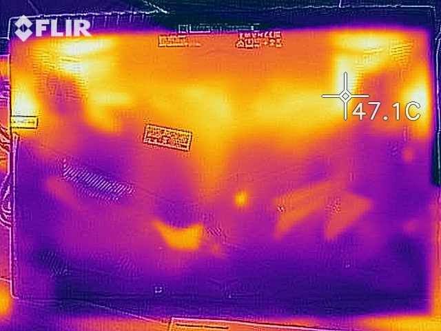 (±) Auf der Unterseite messen wir eine maximalen Wert von 42.5 °C (im Vergleich zum Durchschnitt von 43.3 °C).