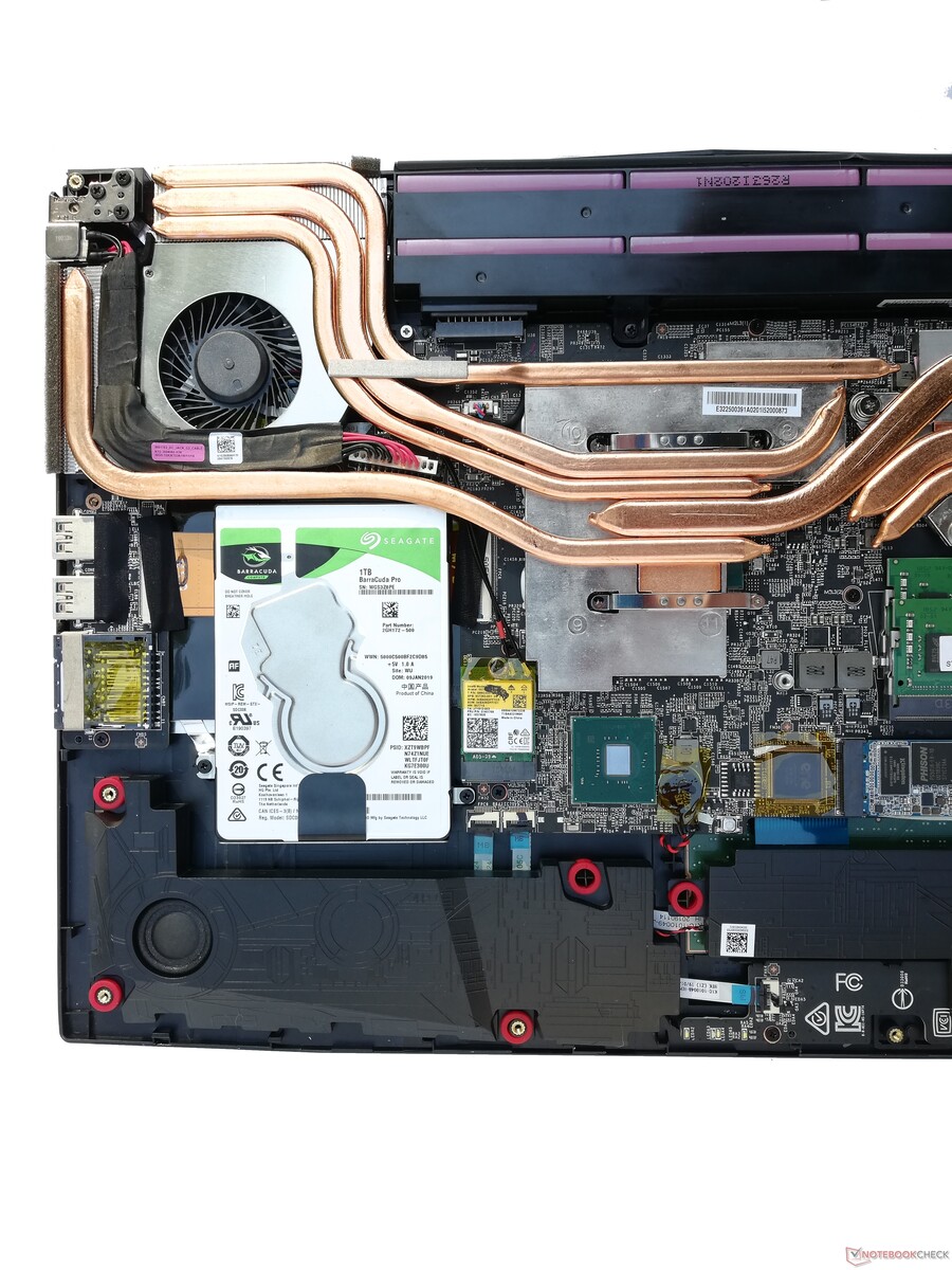 Mit einem Gewicht von 2,6 kg ist das GP75 Leopard 9SD eines der schwereren Notebooks in unserem Testfeld. Die Abmessungen sind ebenfalls etwas höher, wobei die Breite durch den 17 Zoll großen Bildschirm bestimmt wird. Dennoch ist das MSI-Notebook etwas dicker als vergleichbare Laptops, dafür hält sich die Tiefe in Grenzen.