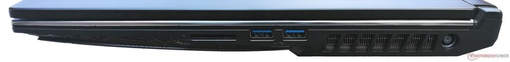 Der Kartenleser des GP75 Leopard 9SD nimmt entsprechende Karten nicht komplett auf. Nach dem Einstecken ragen diese circa 5 mm über den Gehäuserand hinaus. In unserem Test werden mit der Referenzspeicherkarte Toshiba Exceria Pro SDXC 64 GB UHS-II nur unterdurchschnittliche Schreib- und Leseraten erreicht. Allerdings schneiden die Kartenleser anderer Gaming-Notebooks ebenfalls nur mäßig ab, sofern dieser überhaupt vorhanden ist.
