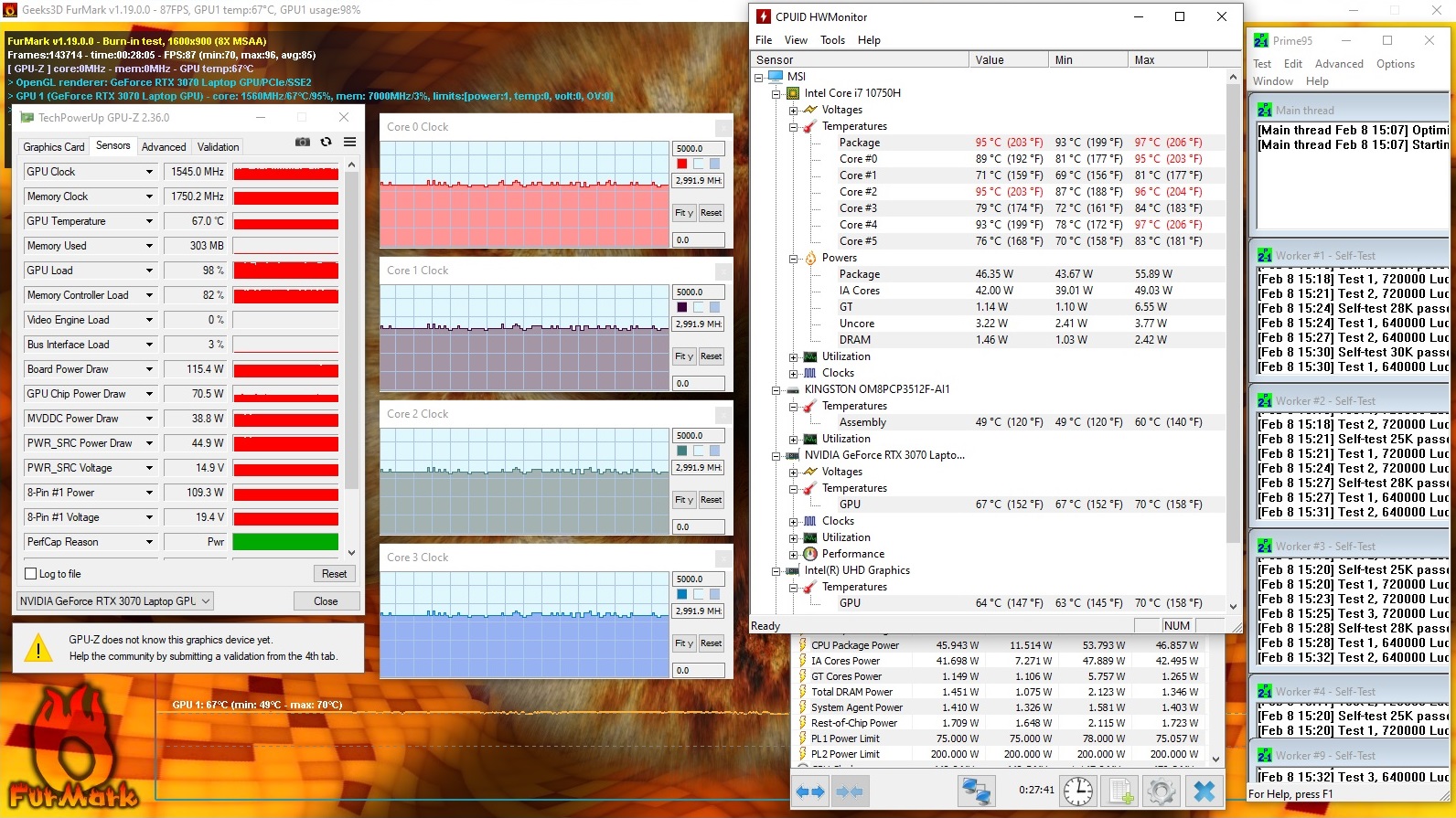 | 85.1 % v7 (old) | 03 / 2021 | MSI GP76 Leopard 10UG i7-10750H, GeForce RTX 3070 Laptop GPU | 2.9 kg | 26 mm | 17.30" | 1920x1080 | |