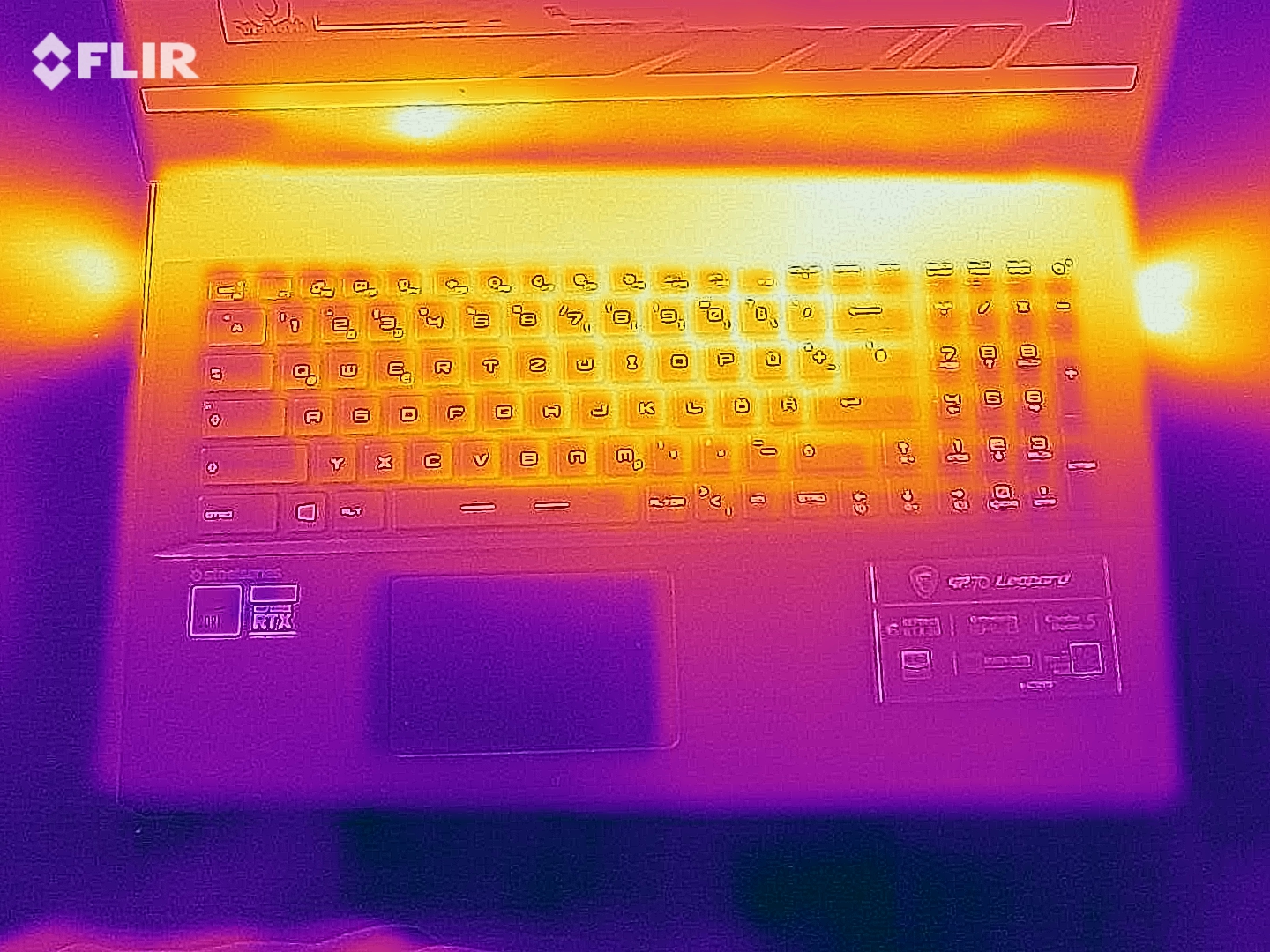 In unserem Test erwärmen sich die Oberflächen des Notebooks von MSI auf bis zu 48 °C unter Last. Dabei liegt der wärmste Punkt an der rechten hinteren Ecke der Unterseite. Die Handballenauflagen erwärmen sich lediglich moderat, wodurch das GP76 Leopard 10UG auch bei starker Beanspruchung benutzbar bleibt.