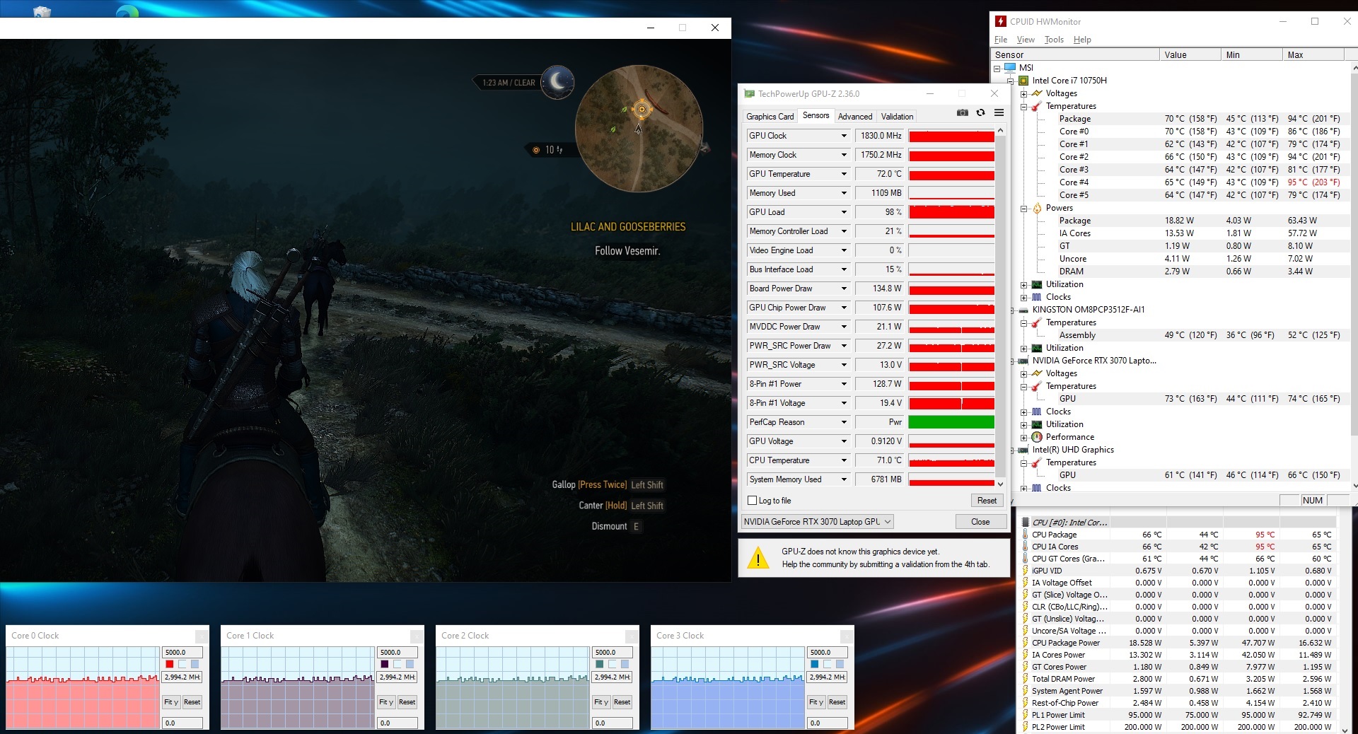 In unserem The-Witcher-3-Langzeittest mit der Grafikeinstellung "Ultra" zeigt das MSI GP76 Leopard 10UG lediglich kleinere Einbrüche der Bildrate, die zudem schnell wieder stabilisiert werden. Anwender müssen daher auch bei langen Spielzeiten nicht mit Performanceeinbrüchen rechnen.