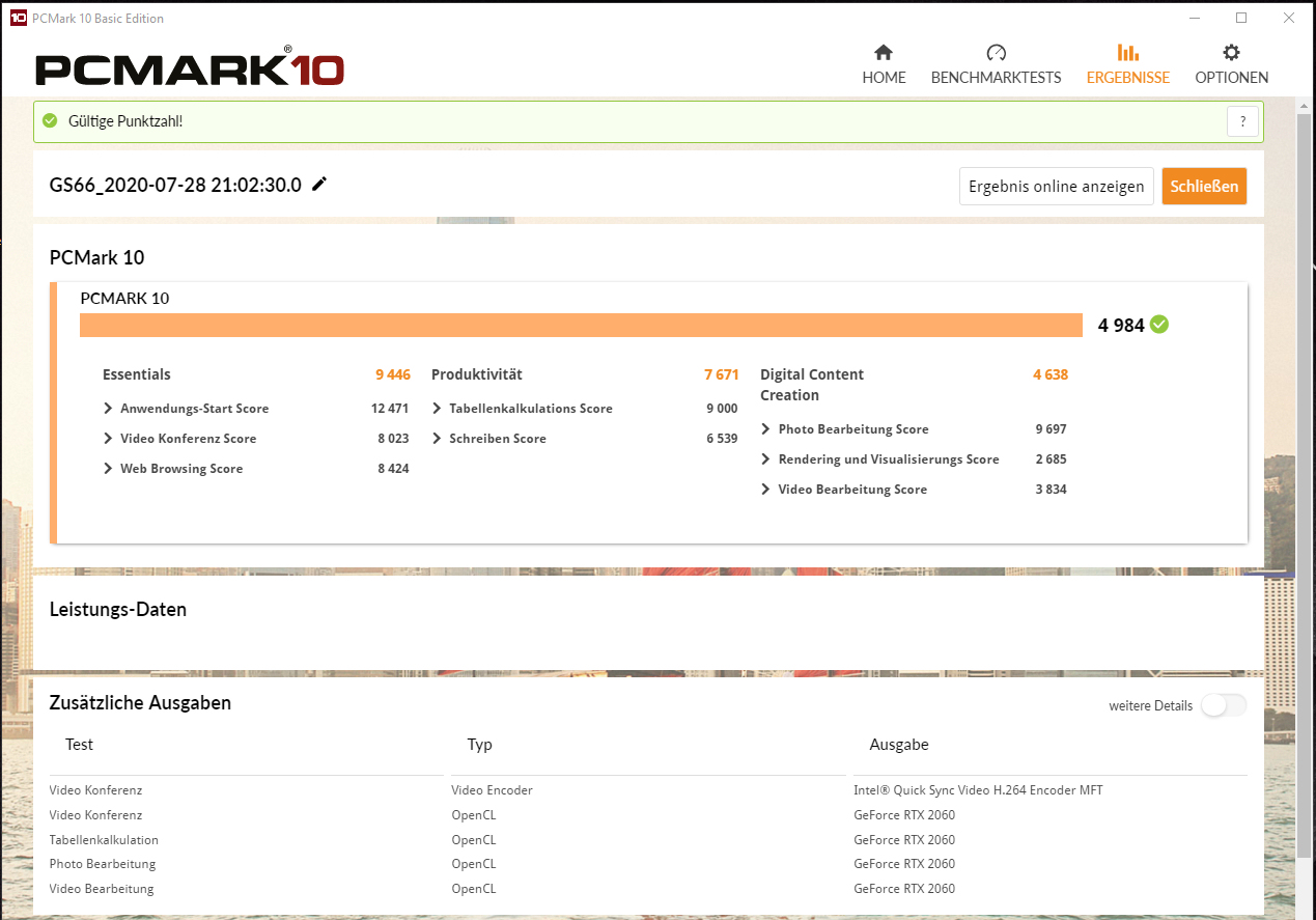 | PCMark 10 Score | 4984 Punkte | |