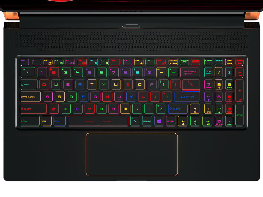 Für präzise Eingaben sorgen die mit RGB-Beleuchtung individualisierbare SteelSeries-Tastatur und das enorm große Touchpad mit Glas-Coating. Jede Taste der Tastatur kann einzeln mit verschiedenen Farben beleuchtet und somit an jedes Nutzerprofil angepasst werden. Die Multi-Touch-Gestensteuerung des 140 x 65 mm großen Touchpads sorgen für zusätzlichen Steuerungs-Komfort.