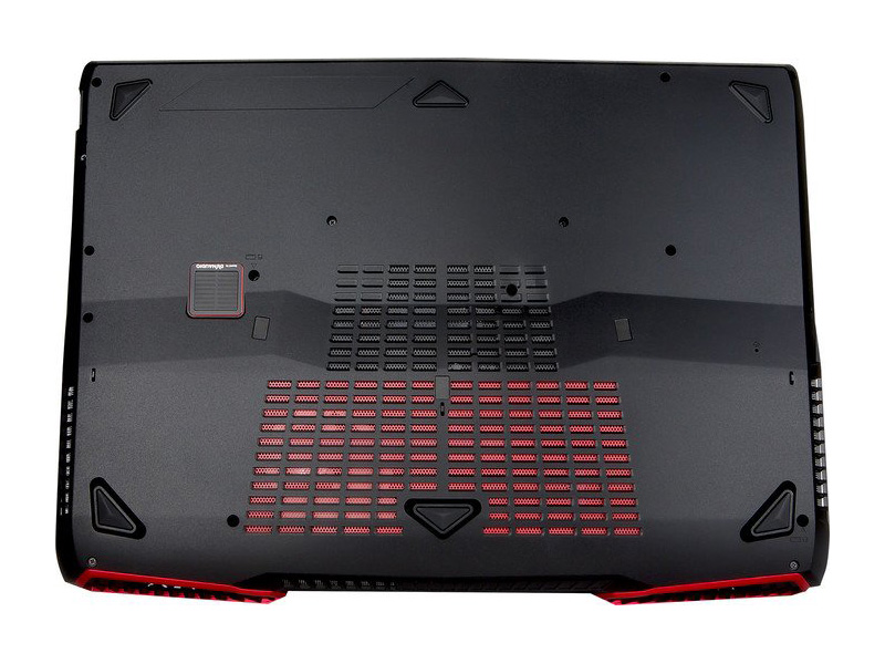 Das MSI GT83VR 7RF-206 Titan SLI ist das erste Gaming-Notebook der Welt mit einer Tastatur mit Cherry-MX-Speed-Switches für schnelleres Spielen. Es ist auch eine der ersten Gaming-Maschinen mit Intels Kaby-Lake-Prozessor siebter Generation. Die SLI-Konfiguration ist sogar mit zwei Nvidia GeForce GTX 1080 GPUs ausgestattet. Da dies 10-Series-GPUs sind, ist das Titan selbstverständlich VR-ready. Für Speicherplatz sorgen eine PCI-e-SSD mit 512 GB in einer Super-RAID-4-Konfiguration sowie eine 1-TB-Festplatte mit 7200 RPM, die 4,97 GB Multimediadateien in 5 Sekunden duplizieren kann. Das Titan ist ebenso groß wie schön. Das 5,9 kg schwere Gerät ist mit gebürstetem Aluminium überzogen und macht mit einer Größe von 42,9 x 31,5 x 4,3~6,35 cm einen imposanten Eindruck, der einen ganzen Tisch einnimmt. Der Deckel des Laptops schimmert einladend und ist mit einem Paar leuchtender, roter Pfeile akzentuiert, daneben prangt ein hinterleuchtetes Siegel mit einem Drachen sowie ein glänzendes MSI-Schild aus Chrom. Die hinteren Lüftungsschlitze sind mit rotem Aluminium umrandet und leuchten verlockend. Beim Öffnen des Deckels kommen eine große mechanische Tastatur und ein digitaler Touch-Nummernblock zum Vorschein, allerdings an der Stelle, an der man normalerweise eine Handballenauflage erwarten würde. Über den Eingabegeräten befindet sich bloß eine große Platte mit einem eingravierten Drachen. Es sieht nicht nur cool aus, sondern ist auch nützlich, denn die Platte kann entfernt werden, um zum Arbeitsspeicher oder den Solid-State-Laufwerken zu gelangen.