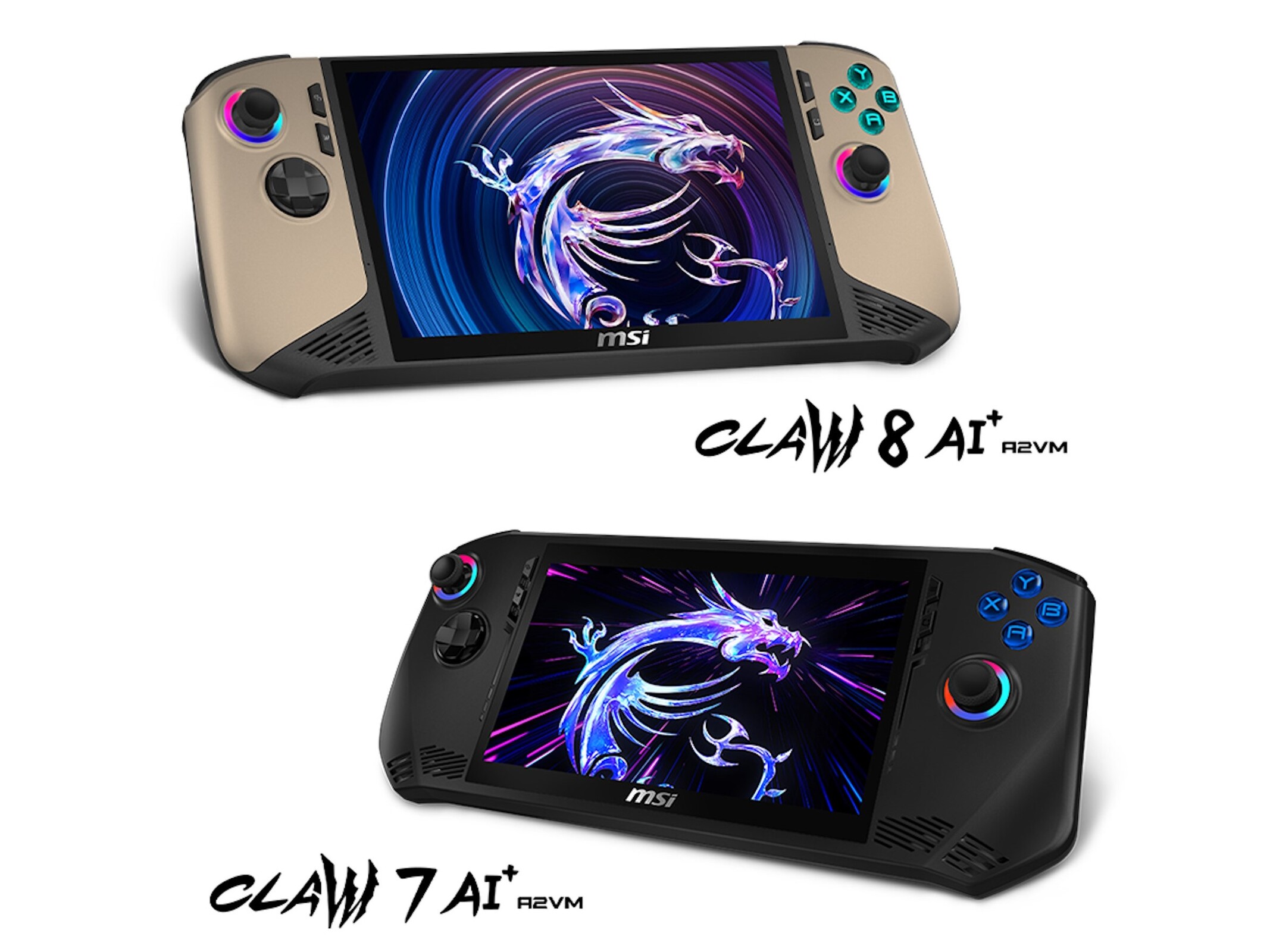Eine Überraschung ist es nun wirklich nicht, jetzt hat MSI die beiden neuen Gaming-Handhelds MSI Claw 8 AI+ und MSI Claw 7 AI+ offiziell vorgestellt. Nach wie vor bleibt der Hersteller - anders als viele andere Anbieter von Gaming-Handhelds - Intel treu und nutzt jeweils den Intel Core Ultra 7 258V mit acht Rechenkernen und einer Intel Arc 140V-Grafikeinheit. Bei der ersten Version war der Intel-Prozessor nicht unbedingt die beste Wahl, wie unser Test gezeigt hat. Unterstützt wird ein 32 Gigabyte großer LPDDR5x-Arbeitsspeicher mit einer Taktfrequenz von bis zu 8.533 MHz. Die M.2-SSD wird über PCIe 4 angebunden und soll sich vom Nutzer einfach wechseln lassen. Der MSI Claw 8 AI wird aktuell in den USA nur mit einem 32 Gigabyte großem RAM und einer SSD mit einer Kapazität von einem Terabyte und für 899 Dollar angeboten, die kleinere Modellvariante kommt mit einer 512 Gigabyte großen SSD - für 799 Dollar.