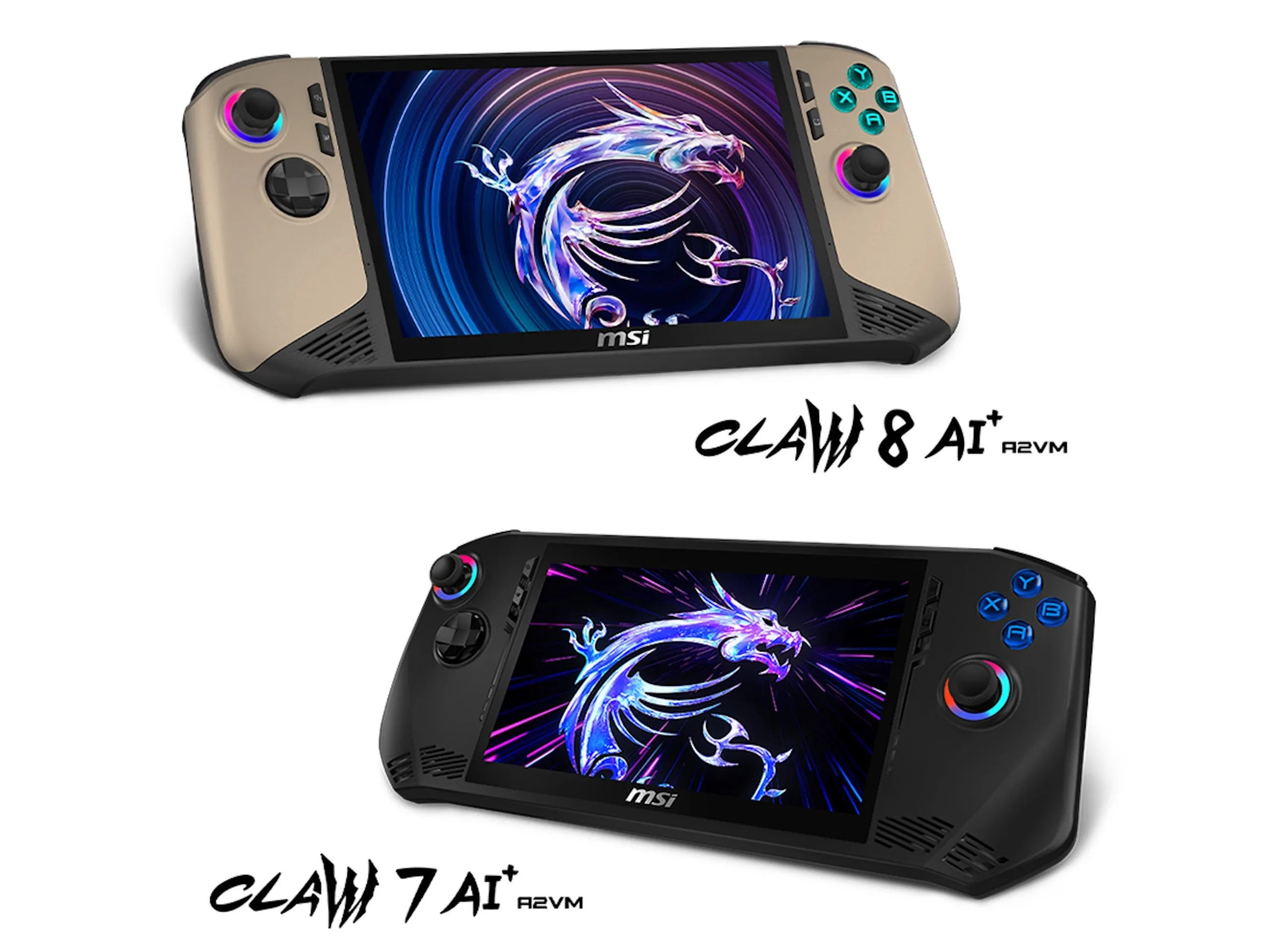 Die beiden Modellvariante unterscheiden sich in Bezug auf die eigentliche Ausstattung nicht elementar, sondern in der Größe und dem Akku. So kommt das MSI Claw 8 AI+ mit einem 8-Zoll-Bildschirm mit einer Auflösung von 1.920 x 1.200 Pixeln, beim MSI Claw 7 AI+ ist das Display 7 Zoll groß und löst mit 1.920 x 1.080 Pixeln auf. Der sRGB-Farbraum soll jeweils vollständig abgedeckt werden können, die typische Helligkeit wird mit 500 cd/m² angegeben, die Bildwiederholfrequenz mit 120 Hz. VRR wird unterstützt.