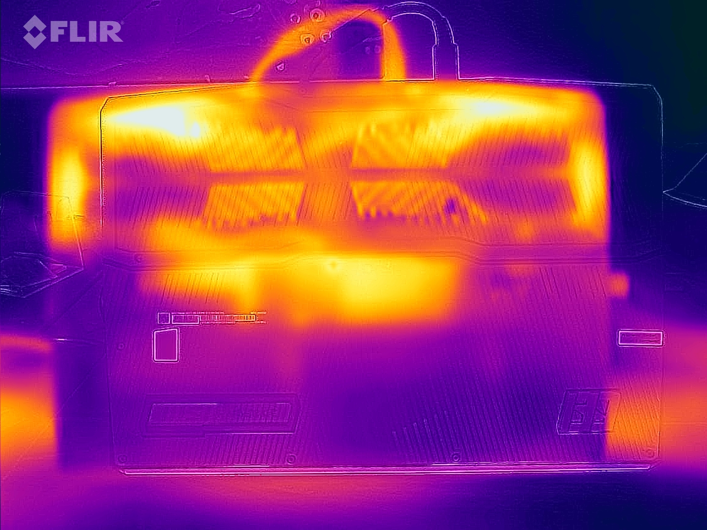 (-) Auf der Unterseite messen wir eine maximalen Wert von 58 °C (im Vergleich zum Durchschnitt von 43.3 °C).