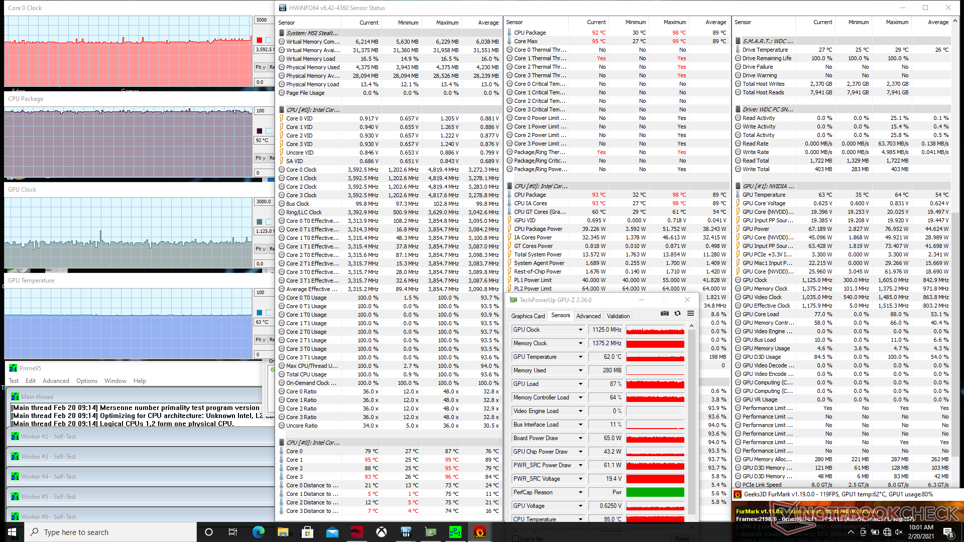 | Prime95 + FurMark Stress (Turbo on) | 3.3 - 3.5 | 1125 | 92 | 63 |