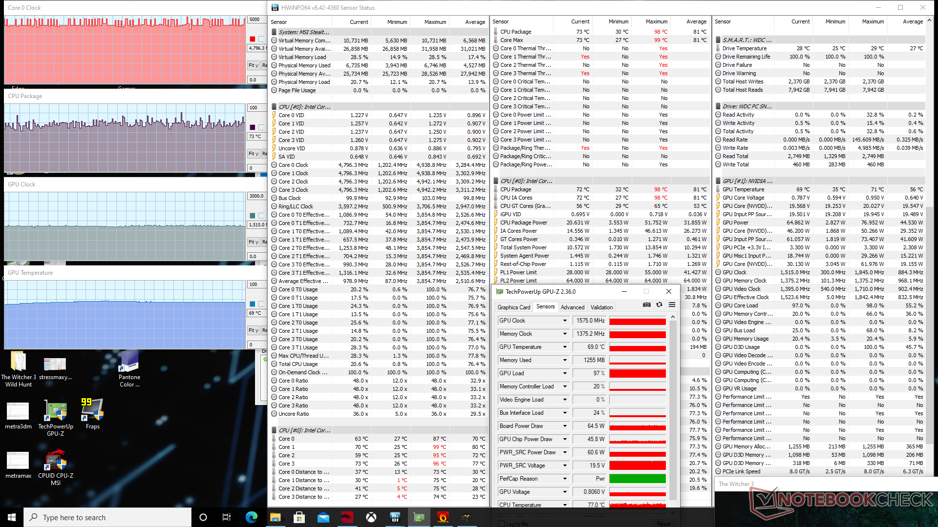 | Witcher 3 Stress (Turbo off) | 4.4 - 4.8 | 1575 | 73 | 69 |
