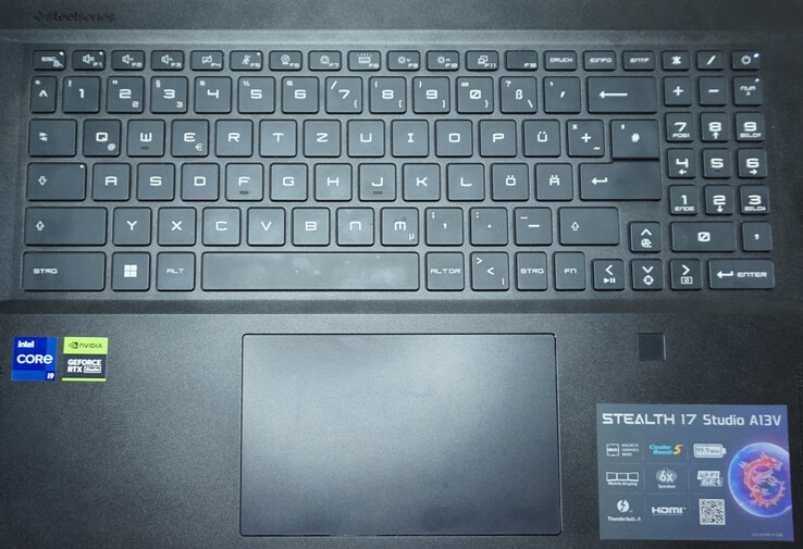 Ebenfalls nicht zum Premiumcharakter des Stealth 17 passt das Touchpad. Dessen Funktionen sind grundlegend in Ordnung. Die physischen Tasten im unteren Bereich wirken jedoch schwammig und ungenau. Wobei im Normalfall wohl eine Maus zum Einsatz kommen wird.